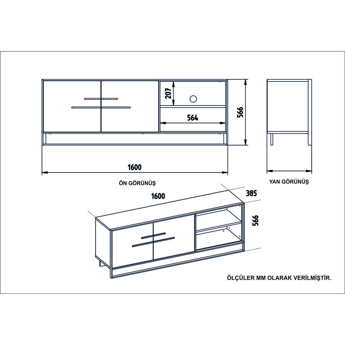 Televizní stolek Polka White and Gold je výrazným designovým prvkem, který kombinuje luxusní bílé provedení s mramorovým dekorem a elegantními zlatými kovovými detaily. Styl inspirovaný barokem a glamour estetikou dodá obývacímu pokoji sofistikovaný a reprezentativní vzhled.Stolek je vyroben ze 100% melaminem potažené dřevotřísky o tloušťce 18 mm, doplněné o kovové zlaté prvky, které zajišťují stabilitu i dlouhou životnost. Nabízí praktický úložný prostor pro TV techniku, dekorace i doplňky a lze jej upevnit na stěnu pro vyšší bezpečnost. Díky mramorovému vzoru se může barevný odstín lehce lišit, což podtrhuje jeho originální vzhled.Parametry a specifikace: materiál: 100% melaminem potažená dřevotříska zlaté části: 100% kov tloušťka desky: 18 mm rozměry: šířka 160 cm, výška 56,6 cm, hloubka 38,5 cm šířka boční police: 56,4 cm výška police: 20,7 cm barva: bílá / zlatá
