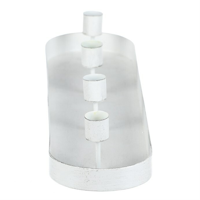Kovový svícen na 4 kónické svíčky, ovál, bílá, 43 x 10 x 6 cm