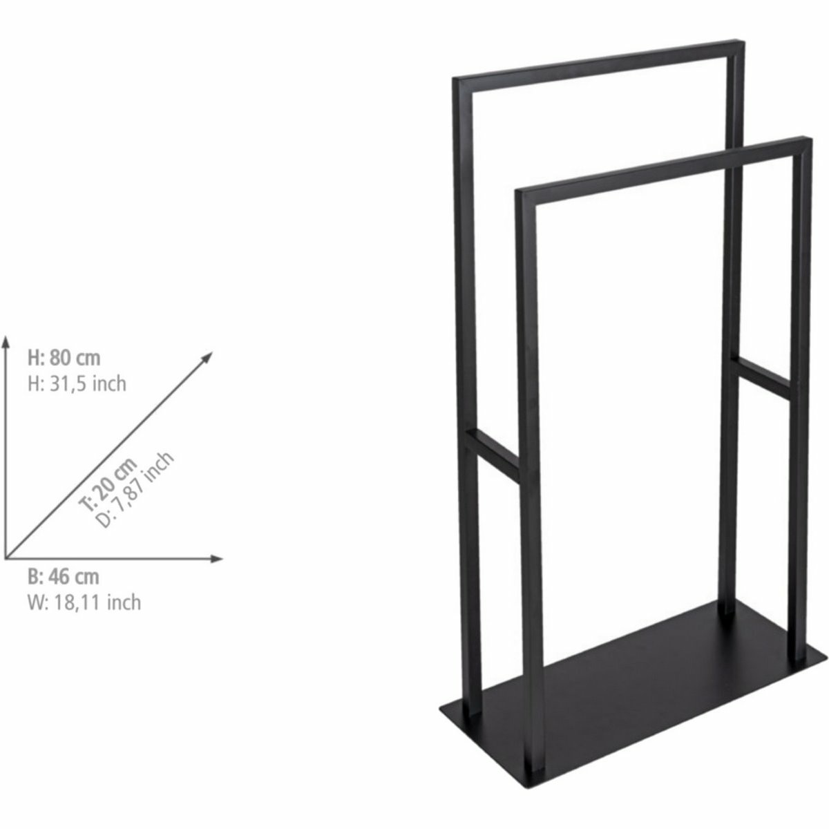Kovový stojan na ručníky RIVALTANA od značky Wenko nabízí praktické a elegantní řešení pro sušení ručníků i odkládání oblečení v koupelně, ložnici nebo šatně. Volně stojící konstrukce v matně černém provedení působí moderně a čistě, zároveň se snadno kombinuje s industriálním, minimalistickým i klasicky laděným interiérem. Díky jednoduchým liniím a pravoúhlému tvaru stojan nepůsobí robustně, ale naopak lehce a vzdušně, takže se hodí i do menších prostor.Konstrukce je vyrobena z lakované nerezové oceli, která je odolná vůči vlhkosti a korozi, a je proto ideální pro každodenní použití v koupelně. Čtvercové profily dodávají stojanu pevnost a stabilitu, zatímco obdélníková kovová základna zajišťuje bezpečné postavení bez nutnosti vrtání či montáže do zdi. Dva držáky umístěné v rozdílné výšce s rozestupem 12 cm umožňují pohodlné zavěšení ručníků, osušek nebo oblečení a podporují lepší cirkulaci vzduchu pro rychlejší schnutí.Díky univerzálnímu využití lze stojan RIVALTANA použít nejen jako koupelnový držák na ručníky, ale také jako menší stojan na oblečení v ložnici, šatně nebo předsíni. Nabízí praktický odkládací prostor bez zásahu do stěn a zároveň slouží jako stylový doplněk interiéru. Kompaktní rozměry zajišťují snadné umístění i tam, kde je omezený prostor, aniž by byl snížen komfort používání.Hlavní výhody produktu volně stojící konstrukce bez nutnosti vrtání lakovaná nerezová ocel odolná proti korozi dva držáky v rozdílné výšce pro lepší schnutí textilií stabilní kovová základna pro bezpečné používání moderní matně černý design vhodný do různých interiérůObsah balení 1× kovový stojan na ručníky