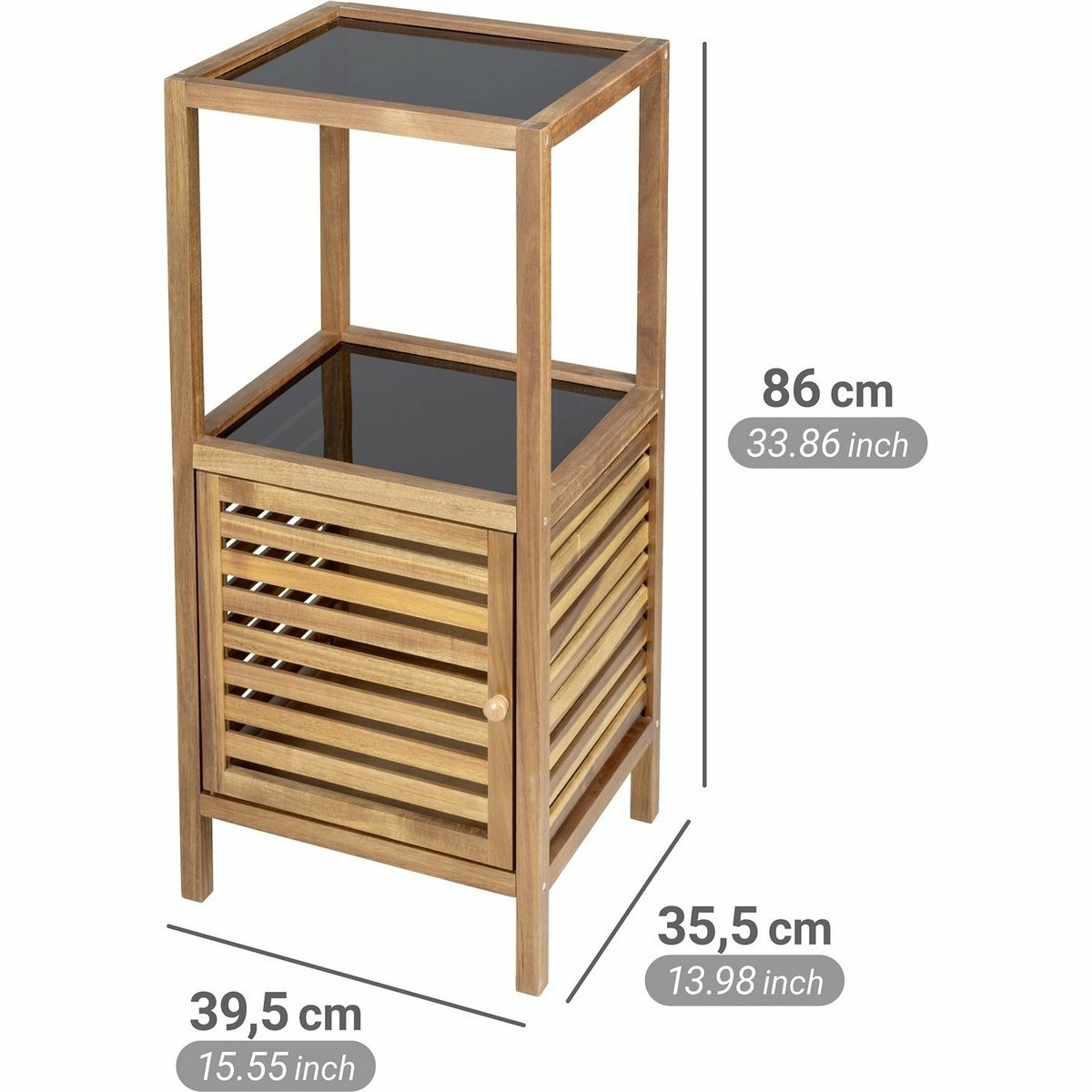 Koupelnový regál s dvířky FONDI od značky Wenko představuje praktický a elegantní úložný kus nábytku, který propojuje přírodní materiál s moderním detailem. Pevná konstrukce z masivního akáciového dřeva působí stabilně a zároveň vnáší do interiéru přirozený, klidný charakter. Regál se hodí nejen do koupelny, ale také do ložnice, chodby nebo obývacího prostoru, kde nabídne přehledné uložení každodenních nezbytností.Kombinace dřeva abezpečnostního skla vytváří vyvážený kontrast mezi teplem přírodního materiálu a čistými liniemi moderního designu. Horní otevřené police poskytují prostor pro ručníky, kosmetiku nebo dekorace, zatímco spodní skříňka s dvířky umožňuje diskrétní uložení věcí, které chcete mít schované. Každá police unese až 10 kg. Provedení působí vzdušně, ale zároveň nabízí dostatek úložného prostoru.Povrchy se snadno udržují a masivní akácie vyniká dlouhou životností a odolností vůči vlhkosti, což oceníte zejména v koupelnovém prostředí. Součástí série FONDI je více typů nábytku, takže regál lze snadno sladit s dalšími prvky do jednotného a harmonického celku. Je vhodný pro domácnosti, které hledají kombinaci funkčnosti, přírodního vzhledu a nadčasového stylu.Hlavní výhody produktu masivní konstrukce z akáciového dřeva kombinace otevřených polic a uzavíratelné skříňky police z bezpečnostního skla pro moderní vzhled s nosností až 10 kg vhodný do koupelny, ložnice i chodby kompaktní rozměry šetřící místo součást designové série FondiObsah balení 1× koupelnový regál s dvířky