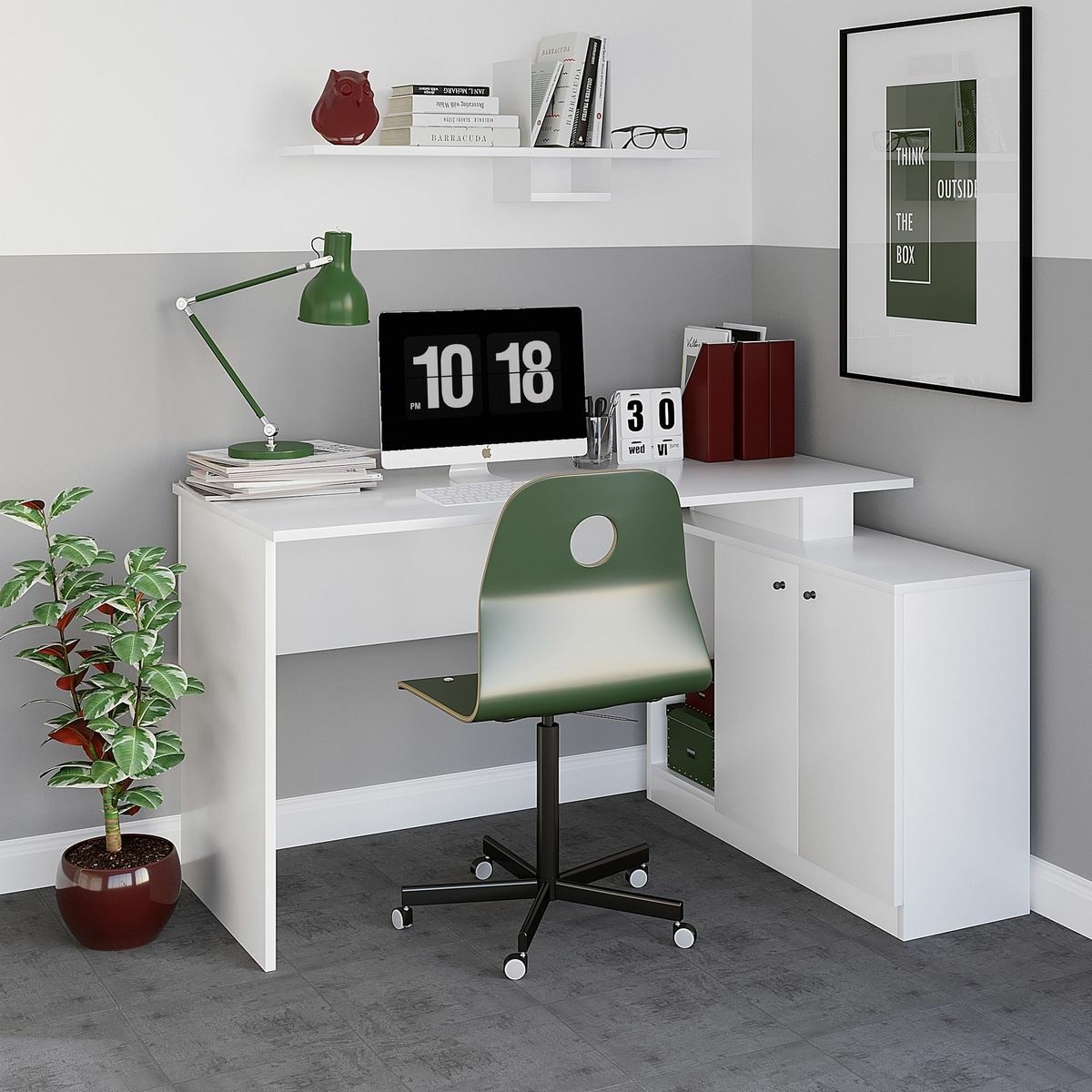 Pracovní stůl Basak White je moderní a funkční psací stůl, který vytváří přehledné, světlé a praktické pracovní prostředí. Jednobarevné bílé provedení působí čistě a minimalisticky, snadno se kombinuje s ostatním nábytkem a hodí se do dětských pokojů, studentských interiérů i domácích pracoven.Stůl je vybaven boční policí s úložnými přihrádkami, která poskytuje dostatek prostoru pro knihy, sešity i pracovní doplňky. Pro maximální využití místa lze tuto část připevnit ke stěně, což zvyšuje stabilitu a šetří podlahovou plochu. Konstrukce z 100% melaminem potažené dřevotřískové desky s tloušťkou 18 mm zajišťuje pevnost, odolnost a dlouhou životnost při každodenním používání.Stůl Basak White je ideální volbou pro všechny, kteří hledají jednoduchý design, dostatek úložného prostoru a praktické řešení do menších i větších místností.Parametry a specifikace: materiál: 100% melaminovaná dřevotřísková deska tloušťka materiálu: 18 mm rozměry stolu: 130 × 74 × 60 cm (š × v × h) rozměry boční police: 28 × 62 × 90 cm (š × v × h) barva: bílá