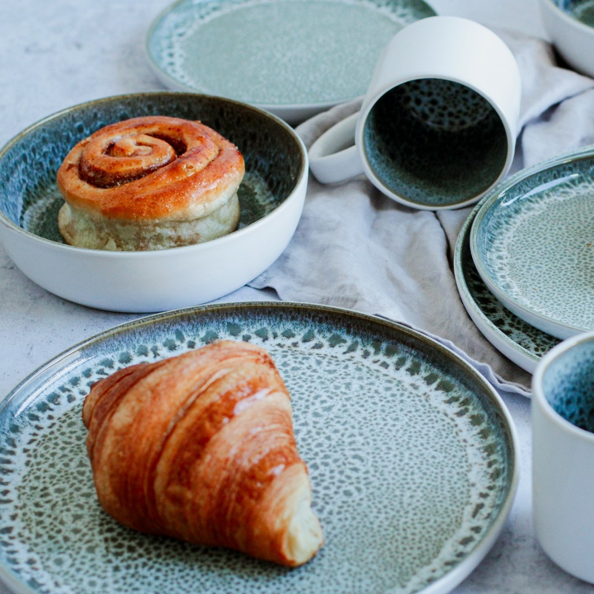 Jídelní sada nádobí MALEA od značky Mäser je stylová jídelní sada pro 4 osoby, která staví na výrazném vizuálním kontrastu a moderním pojetí stolování. Na první pohled zaujme čistými bílými vnějšími plochami, které působí klidně, elegantně a nadčasově. Právě tento světlý základ nechává vyniknout vnitřní části nádobí, které jsou opatřeny reaktivní glazurou s efektní texturou. Výsledkem je harmonická kombinace, která dodá prostřenému stolu osobitý charakter.Sada je vyrobena z kvalitní kameniny, která vyniká pevností, odolností a příjemnou hmotností. Reaktivní glazura na vnitřních plochách vytváří při výpalu jedinečný dekor s hloubkou a přirozenou kresbou – každý kus je tak originál. Texturovaný efekt uvnitř talířů a hrnků krásně kontrastuje s hladkým bílým vnějškem a dodává nádobí řemeslný, autentický vzhled.Promyšlené složení sady pokrývá kompletní každodenní stolování. Mělké talíře jsou ideální pro hlavní chody, dezertní talíře poslouží ke sladkým i lehkým jídlům, hluboké talíře jsou vhodné na polévky, těstoviny či bowl pokrmy a hrnky nabídnou dostatek prostoru pro kávu, čaj i další horké nápoje. Díky odolnému materiálu a praktickému provedení je sada vhodná pro použití v mikrovlnné troubě i myčce nádobí.Hlavní výhody produktu jídelní sada pro 4 osoby výrazný kontrast bílého vnějšku a vnitřní reaktivní glazury kvalitní a odolná kamenina každý kus je originál díky neopakovatelným vzorům nadčasový design vhodný pro každodenní stolování sada vhodná do mikrovlnky i myčkyObsah balení 4× mělký talíř 26 cm 4× dezertní talíř 19,5 cm 4× hluboký talíř 17,5 cm 4× hrnek 35 cl