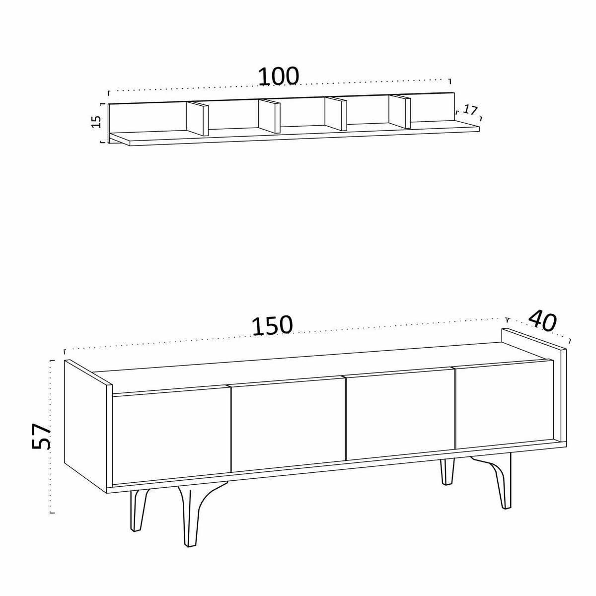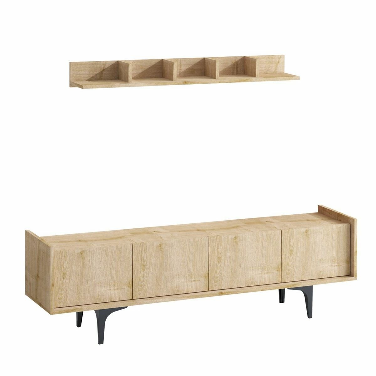 Televizní stolek Cursa Sapphire Oak spojuje přirozený vzhled dekoru dub sapphire s moderním, lehce skandinávským stylem. Působí teple, elegantně a snadno zapadne do současných i klidně laděných interiérů.Stolek nabízí praktický úložný prostor pro televizor i elektroniku a je doplněn nástěnnou policí, která poskytuje místo pro dekorace, knihy nebo drobné doplňky. Díky vyváženým proporcím působí celek vzdušně a zároveň funkčně.Korpus je vyroben ze 100% melaminem potažené dřevotřísky, která zajišťuje pevnost a dlouhou životnost. Povrchová úprava s antibakteriálními vlastnostmi přispívá k čistému a hygienickému prostředí v domácnosti. Design kombinuje prvky tradičního, industriálního a skandinávského stylu, což dodává nábytku nadčasový charakter.Parametry a specifikace: materiál: 100% melaminem potažená dřevotříska rozměry TV stolku: 150 × 57 × 40 cm rozměry nástěnné police: 100 × 15 × 17 cm dekor: dub sapphire