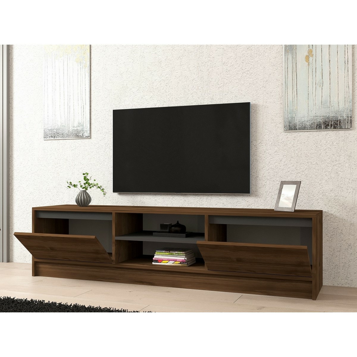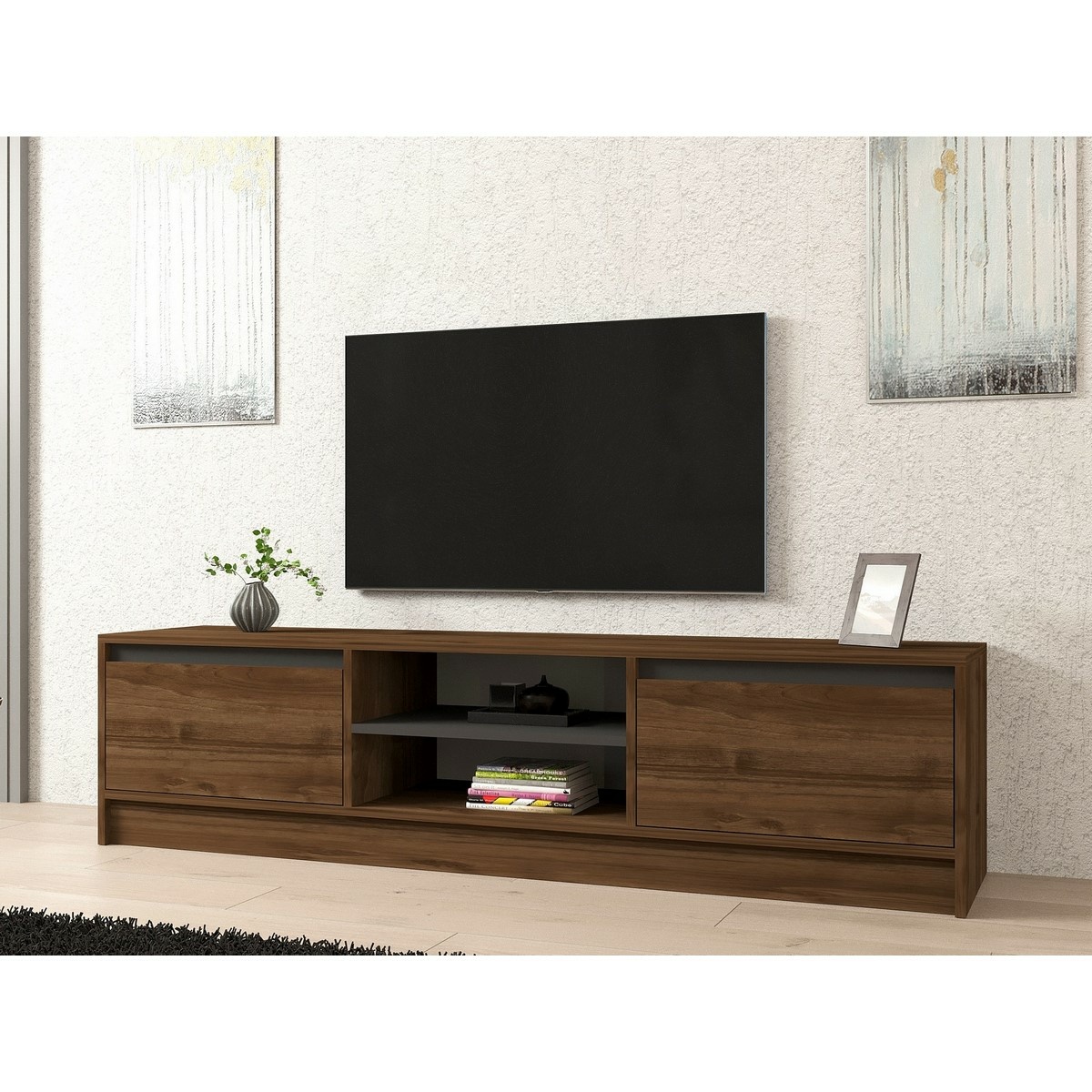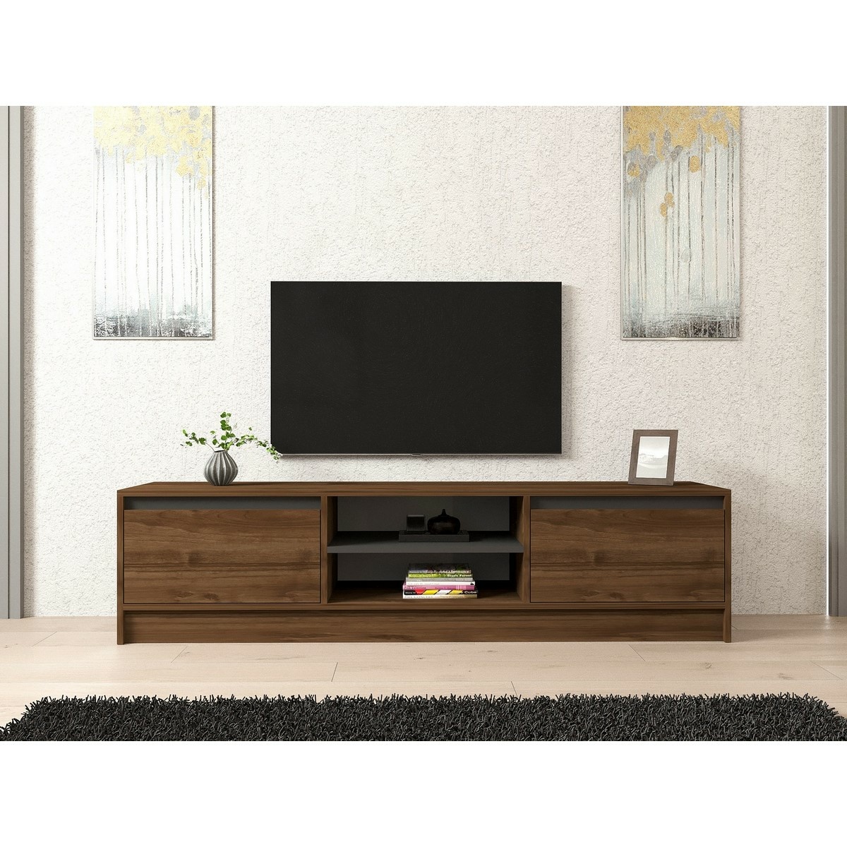 Televizní stolek Olca Walnut and Anthracite vyniká moderním a elegantním designem, který kombinuje teplý ořechový dekor s kontrastním antracitem. Díky čistým liniím a nízkému profilu působí nadčasově a snadno zapadne do moderních i industriálně laděných interiérů.Stolek je vyroben ze 100% melaminem potažené dřevotřísky o tloušťce 18 mm, což zajišťuje pevnost a odolnost při každodenním používání. Nabízí praktický úložný prostor pro TV techniku i příslušenství a melaminový povrch se snadno udržuje. Plastové nohy zajišťují stabilitu a nenápadný vzhled.Parametry a specifikace: materiál: 100% melaminem potažená dřevotříska tloušťka desky: 18 mm rozměry: šířka 180 cm, výška 45 cm, hloubka 40 cm nohy: plastové barva: ořech / antracit