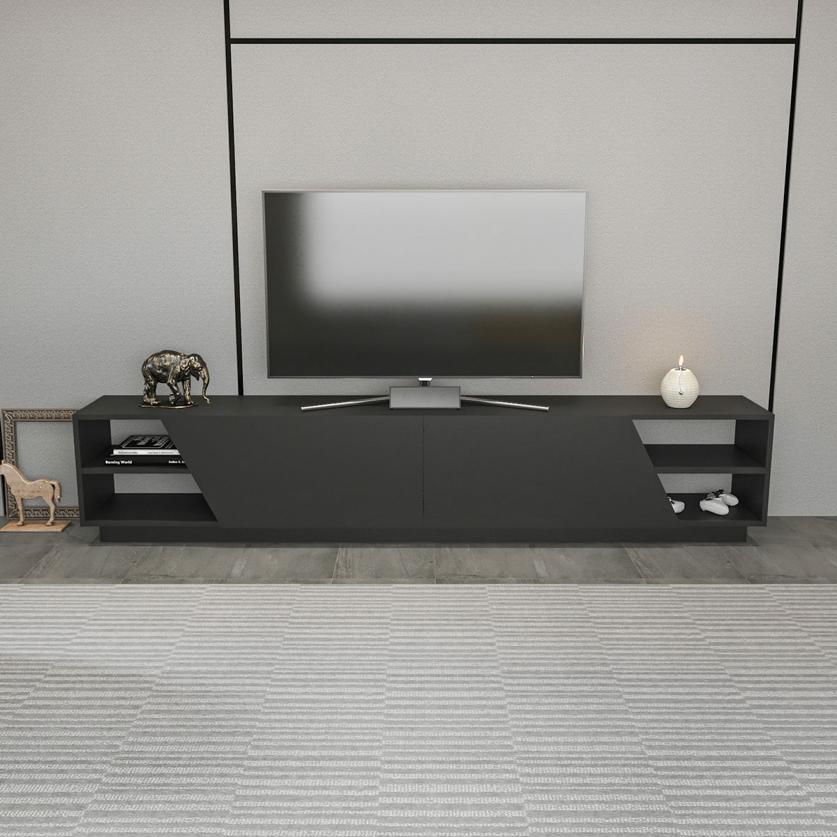 Televizní stolek Rhodes Anthracite zaujme čistým skandinávským designem a elegantním antracitovým provedením, které působí moderně, klidně a nadčasově. Díky jednoduchým liniím a neutrální barvě se snadno začlení do moderních i minimalistických interiérů a vytvoří vyvážené zázemí pro televizní sestavu.Stolek je vyroben ze 100% melaminem potažené dřevotřísky o tloušťce 18 mm, která zajišťuje pevnost a dlouhou životnost při každodenním používání. Široké provedení nabízí dostatek prostoru pro TV techniku i doplňky a pomáhá udržet obývací pokoj přehledný a uspořádaný.Parametry a specifikace: materiál: 100% melaminem potažená dřevotříska tloušťka desky: 18 mm rozměry: šířka 240 cm, výška 47,4 cm, hloubka 37,1 cm barva: antracit