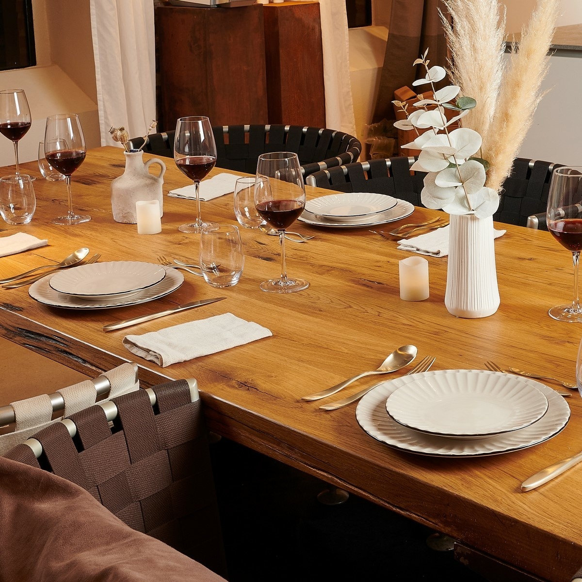 Sada mělkých talířů OSITA od značky Mäser přináší výrazný a zároveň elegantní prvek do každodenního stolování. Talíře zaujmou plasticky tvarovaným okrajem, který vytváří jemný reliéf po celém obvodu a dodává prostřenému stolu osobitý charakter. Celek působí harmonicky a nadčasově, takže se snadno kombinuje s různými styly interiéru.Talíře jsou vyrobeny z kameniny s krémovou glazurou, která zvýrazňuje přirozený vzhled materiálu a dodává nádobí hřejivý tón. Okraj je doplněn kontrastní linkou, jež decentně orámuje servírovaný pokrm a podtrhne tvar talíře. Glazovaný povrch je hladký, příjemný na dotek a snadno se udržuje. Talíře jsou vhodné do myčky nádobí i mikrovlnné trouby, což zajišťuje pohodlné používání v každodenním provozu.Průměr 27 cm je ideální pro servírování hlavních chodů, masa s přílohami, těstovin i větších salátů. Sada je určena pro 4 osoby a je součástí kolekce OSITA, která zahrnuje další talíře, misky a šálky ve stejném designu. Díky tomu lze snadno vytvořit jednotně sladěné, vizuálně výrazné stolování.Hlavní výhody produktu sada mělkých talířů pro 4 osoby kvalitní kamenina s krémovou glazurou plasticky tvarovaný dekorativní okraj kontrastní linka zvýrazňující tvar talíře součást ucelené kolekce OSITA vhodné do myčky nádobí i mikrovlnné troubyObsah balení 4× mělký talíř 27 cm