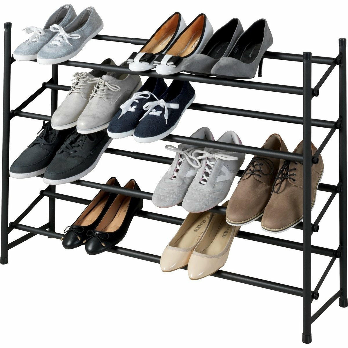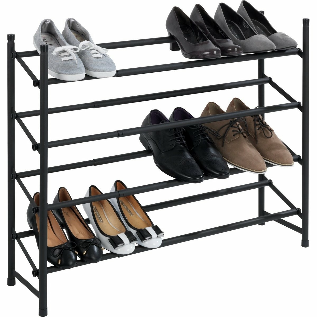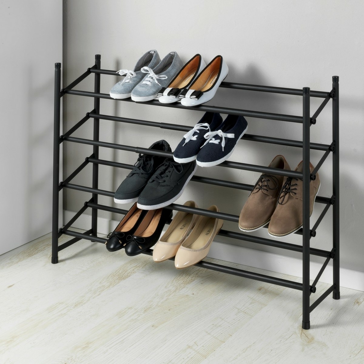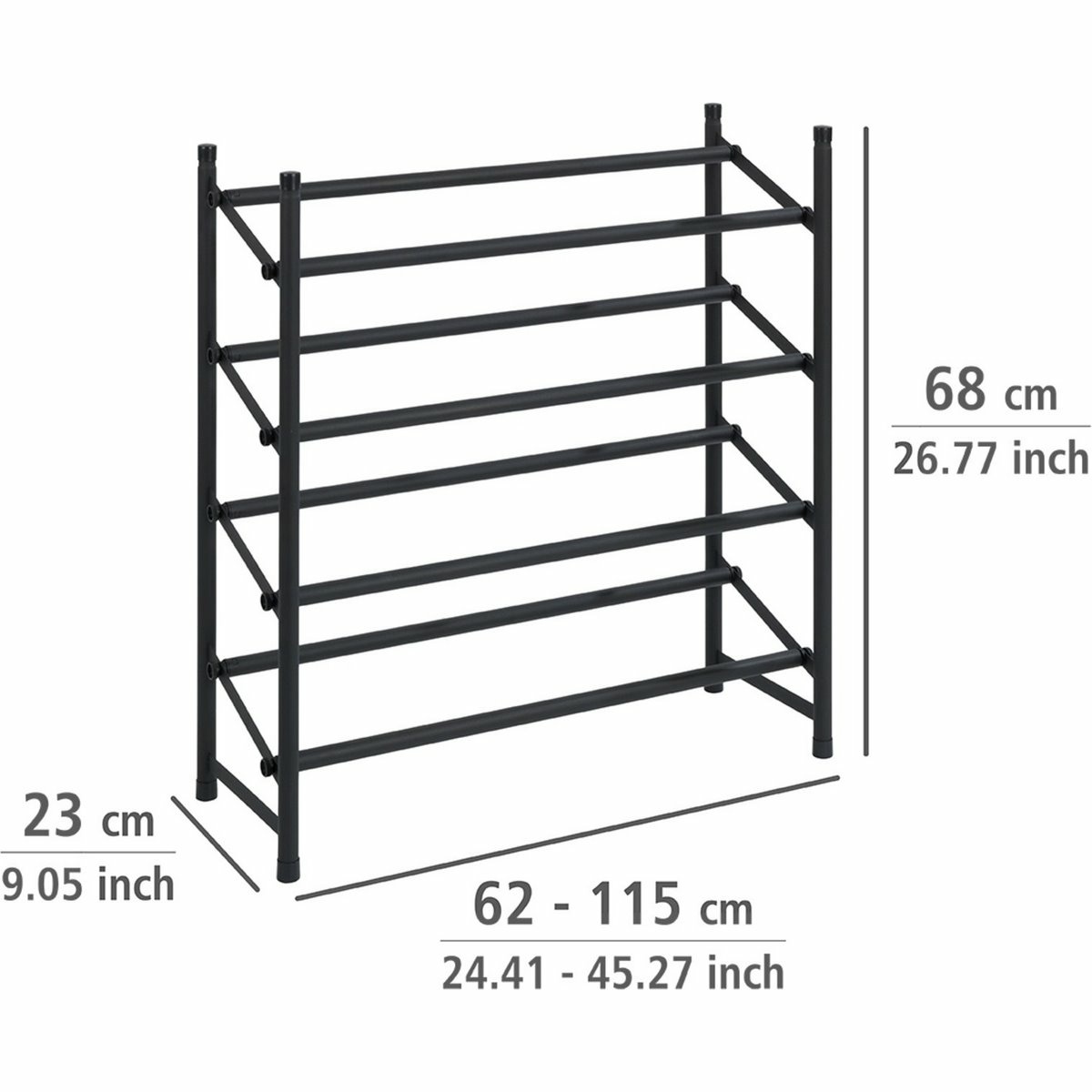 Teleskopický kovový botník HERO od značky Wenko představuje praktické a zároveň designově výrazné řešení pro přehledné uložení obuvi v moderní domácnosti. Matně černé provedení v industriálním stylu působí elegantně a čistě, díky čemuž se botník hodí do předsíně, šatny, ložnice i otevřeného šatního prostoru. Otevřená konstrukce nechává obuv vyniknout a zároveň usnadňuje každodenní přístup.Konstrukce je vyrobena z práškově lakovaného kovu, který zajišťuje pevnost, stabilitu a dlouhou životnost. Botník disponuje čtyřmi úrovněmi pro uložení až 24 párů bot, a to včetně sportovní, společenské i každodenní obuvi. Díky promyšlenému rozestupu jednotlivých polic nabízí dostatek prostoru i pro vyšší boty s podpatkem.Velkou předností je teleskopická šířka, kterou lze plynule nastavit v rozmezí 62 až 115 cm. Botník se tak snadno přizpůsobí dostupnému prostoru i aktuálním potřebám. Povrch jednotlivých tyčí je opatřen protiskluzovou úpravou, která zajišťuje stabilní uložení bot a zabraňuje jejich nechtěnému sklouzávání. Konstrukci je navíc možné rozšiřovat a jednotlivé prvky na sebe stohovat, což ocení zejména domácnosti s rostoucí kolekcí obuvi.Hlavní výhody produktu kapacita až 24 párů bot teleskopická šířka 62–115 cm čtyři úrovně pro přehledné uložení obuvi protiskluzový povrch tyčí pevná kovová konstrukce s práškovým lakem možnost rozšíření a stohování dalších prvkůObsah balení 1× teleskopický kovový botník