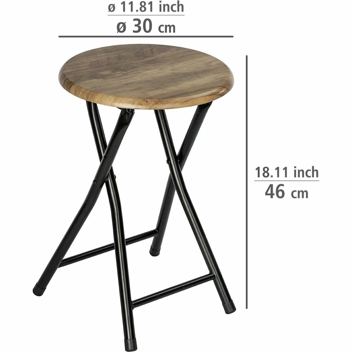 Skládací stolička FORIO od značky Wenkopřináší do interiéru výrazný industriální styl inspirovaný loftovým bydlením a minimalistickým designem. Kombinace sedáku s kresbou dřeva a černé ocelové konstrukce působí robustně, ale zároveň elegantně a nadčasově. Kulatý tvar sedací plochy zjemňuje celkový vzhled a umožňuje snadné začlenění do koupelny, chodby, ložnice i obývacího prostoru. Sedák nabízí pevnou a stabilní plochu, která se hodí nejen k sezení, ale také jako odkládací nebo dekorativní stolek. Stolička je ideální pro odložení ručníků, oblečení, tašky nebo jako podstavec pro květiny a dekorace. Díky kompaktním rozměrům a jednoduché konstrukci nezabírá zbytečně místo a snadno se přemísťuje podle aktuální potřeby. Velkou předností je skládací mechanismus, který umožňuje stoličku během chvilky složit a uložit, když ji zrovna nepoužíváte. Ocelový rám s černým lakem zajišťuje dobrou stabilitu a dlouhou životnost. Stolička Forio je praktickým doplňkem do menších interiérů i stylovým akcentem do moderně laděných prostor. Upozorňujeme, že stolička neslouží ke stoupání.Hlavní výhody produktu skládací konstrukce pro úsporu místa industriální loftový design stabilní ocelový rám s černým lakem pevný sedák z MDF v dekoru dřeva možnost využití jako stolička k sezení, odkládací stolek nebo stojan na květiny Obsah balení 1× skládací stolička