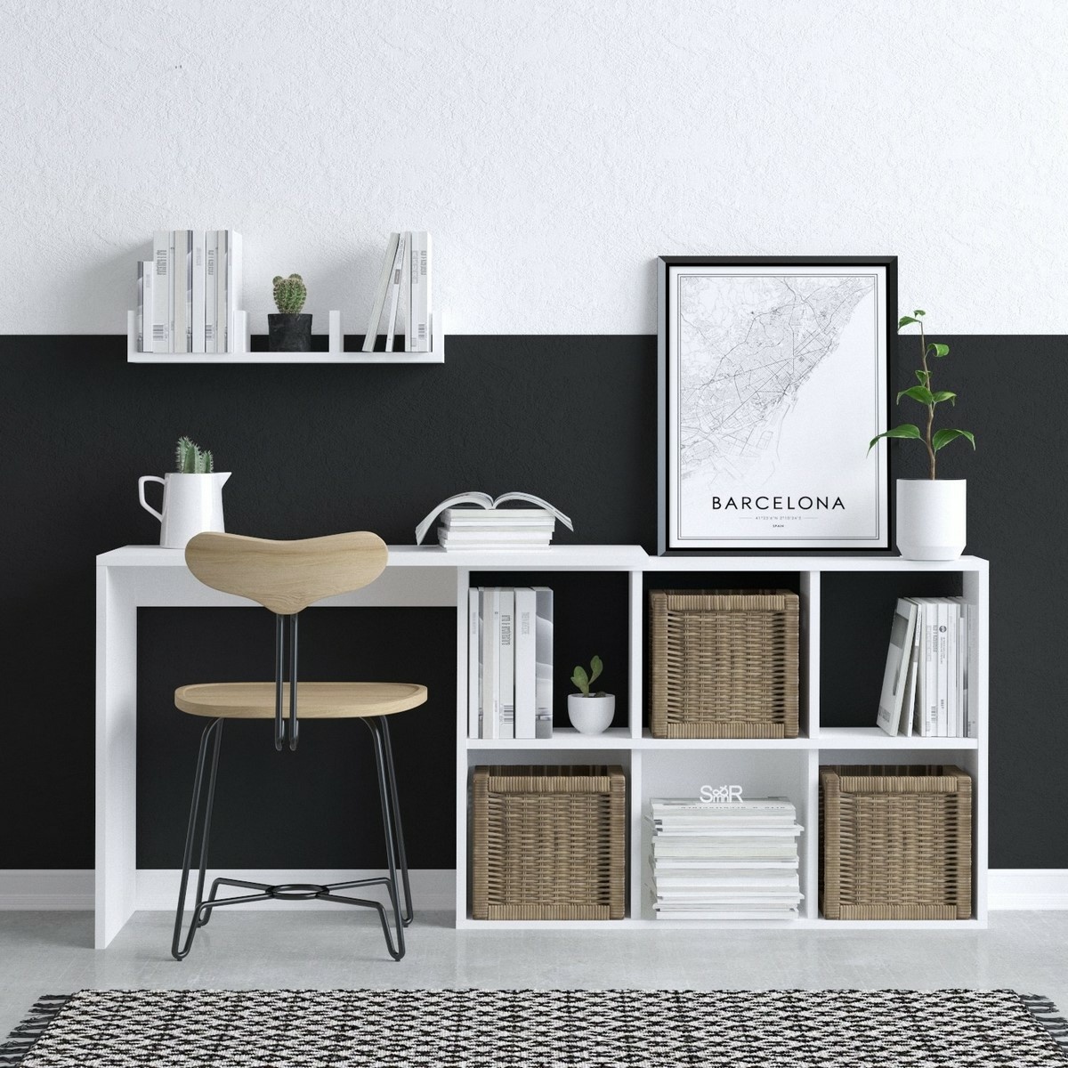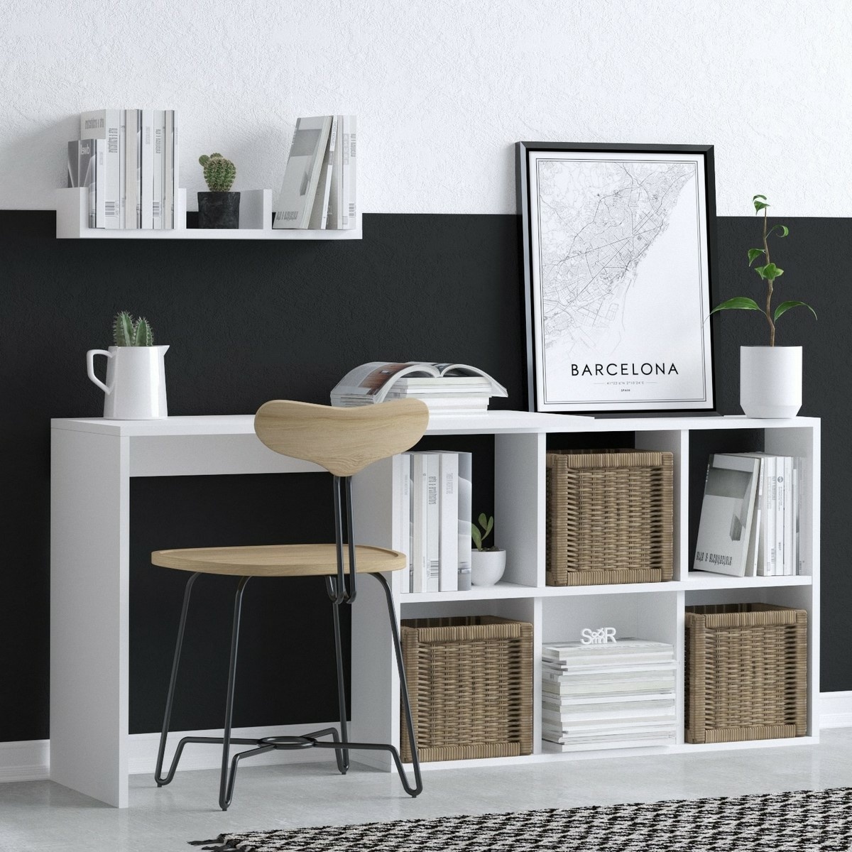Pracovní stůl Jack White and Oak je kompaktní a praktické řešení pro domácí pracovnu, studentský pokoj i menší pracovní kout. Spojení bílé barvy a dubového dekoru působí čistě, přirozeně a snadno se kombinuje s ostatním nábytkem v moderním i skandinávském interiéru.Stůl je vyroben ze 100% melaminem potažené dřevotřískové desky o tloušťce 18 mm, která zajišťuje pevnost a stabilitu při každodenním používání. Chytře řešený úložný prostor v podobě polic nabízí místo pro knihy, dokumenty i pracovní doplňky, zatímco pracovní deska poskytuje dostatek prostoru pro notebook a psací potřeby.Díky svému vertikálnímu uspořádání je stůl ideální do menších místností, kde je potřeba efektivně využít prostor, aniž by byl omezen komfort při práci nebo studiu.Parametry: materiál: 100% melaminem potažená dřevotřísková deska tloušťka desky: 18 mm šířka: 74 cm výška: 145 cm hloubka: 45 cm barva: bílá / dub