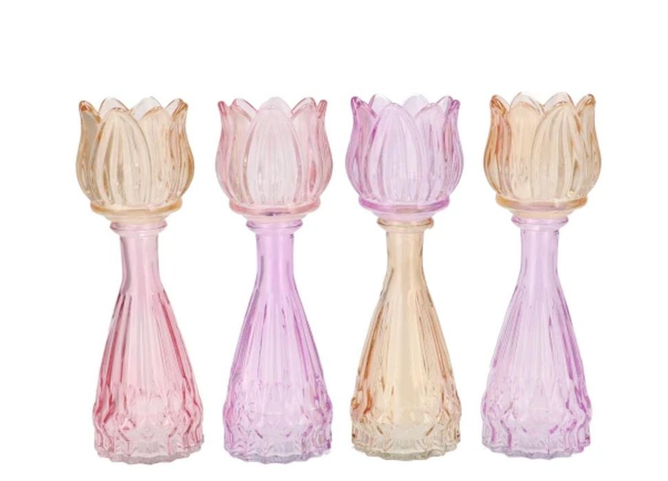 4ks pastelový mix skleněný svícen/ váza tulipán Love Tulip - Ø 7*18 cm Barva: fialová, růžová, broskvová pastelová mixMateriál: sklo