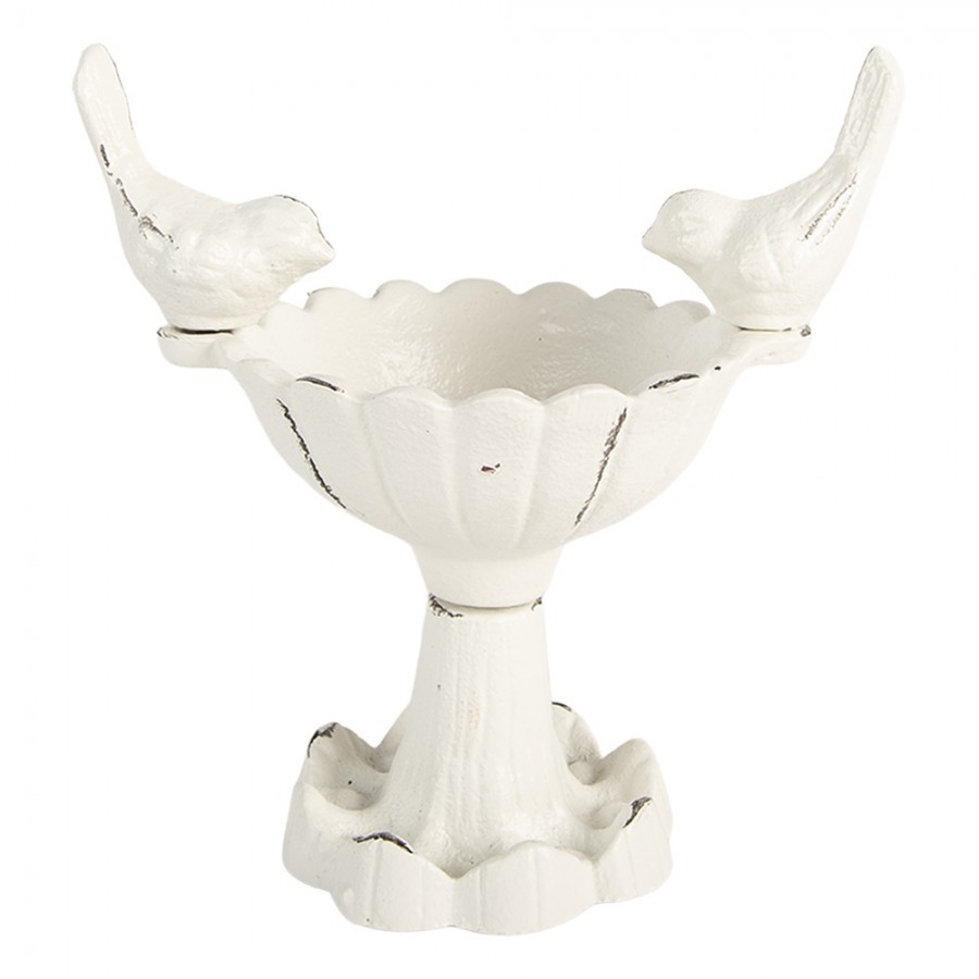 Bílé antik malé litinové krmítko s ptáčky pro ptáčky - 14*10*15 cm 6Y5741