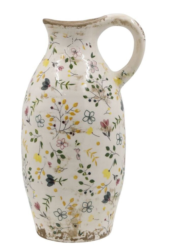 Béžový antik keramický džbán s květy Cavaillon - Ø 15*27 cm 65094919
