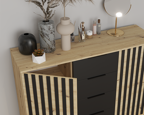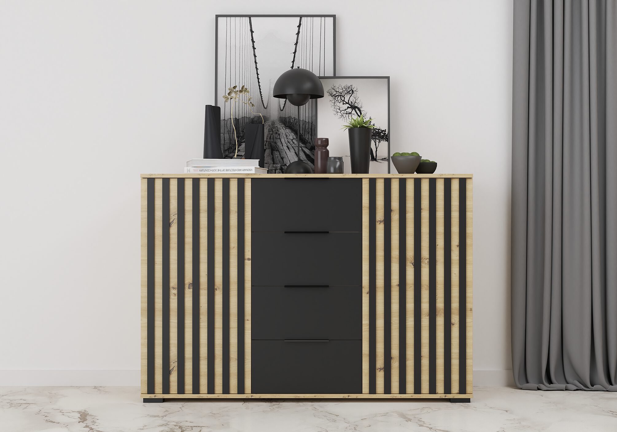 IDZ Komoda WERONA 2D4S 26, 135 cm Dub Artisan/Černá