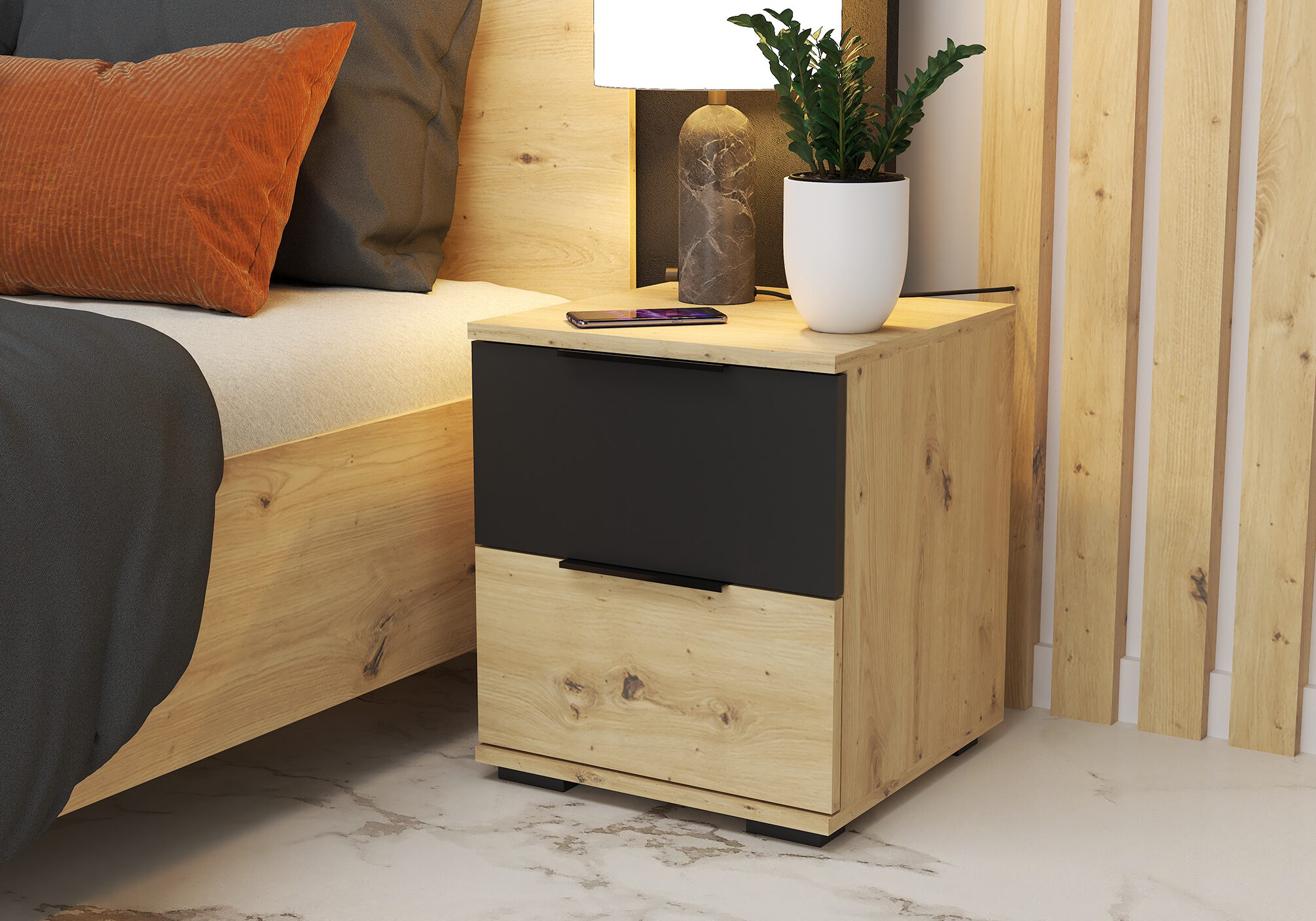IDZ Noční stolek WERONA 22, 40 cm Dub Artisan/Černá