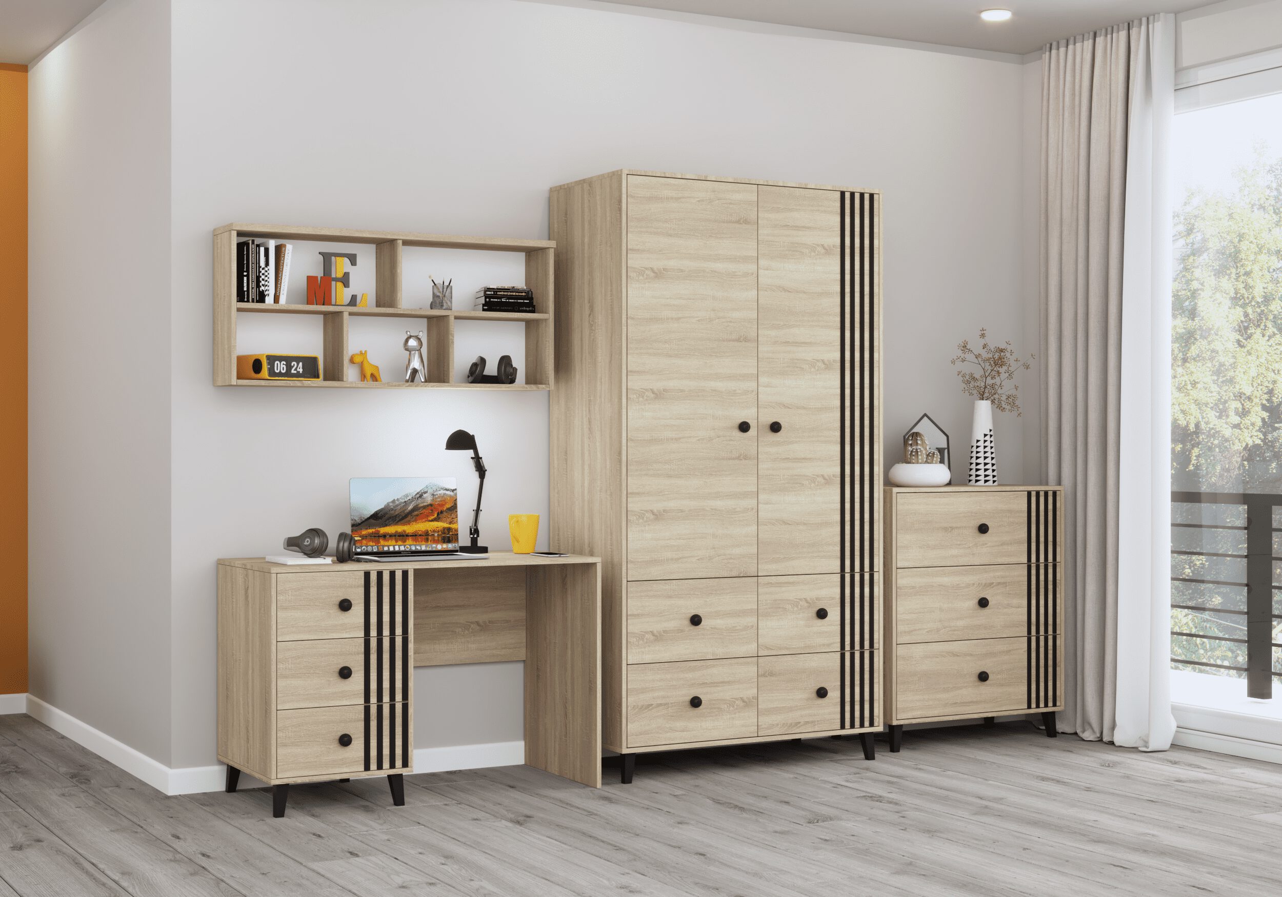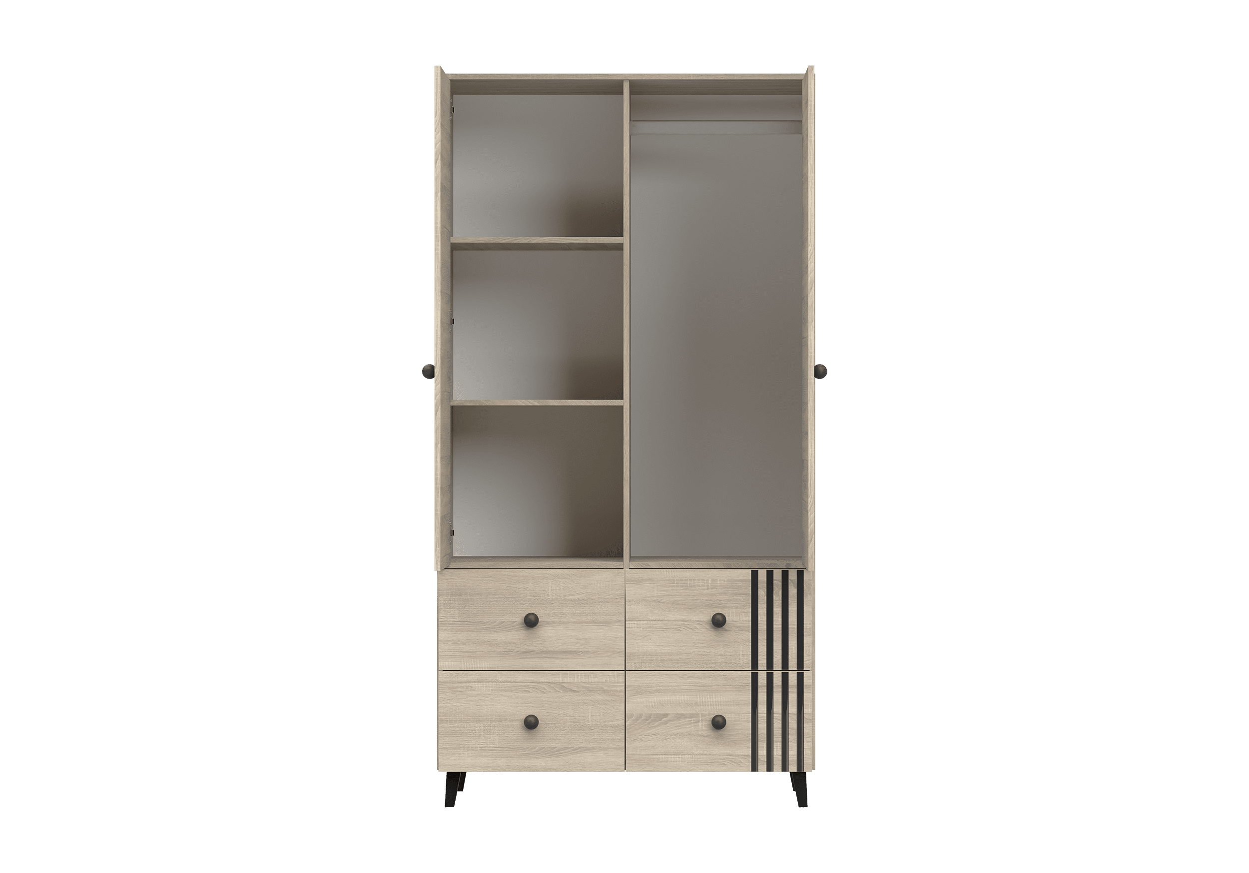 IDZ Šatní skříň FOX 4S2D 06, 104 cm Dub Sonoma/Černá