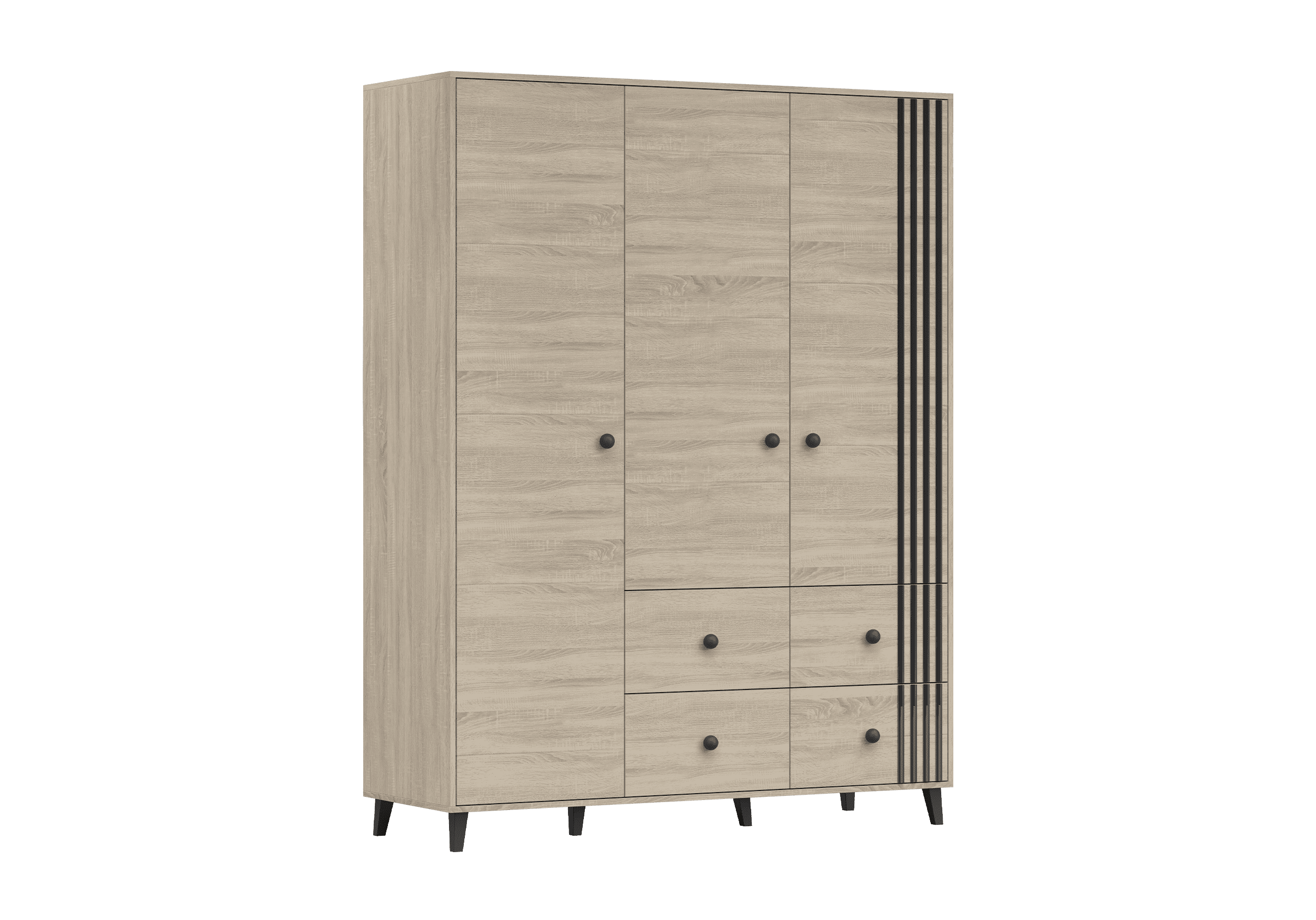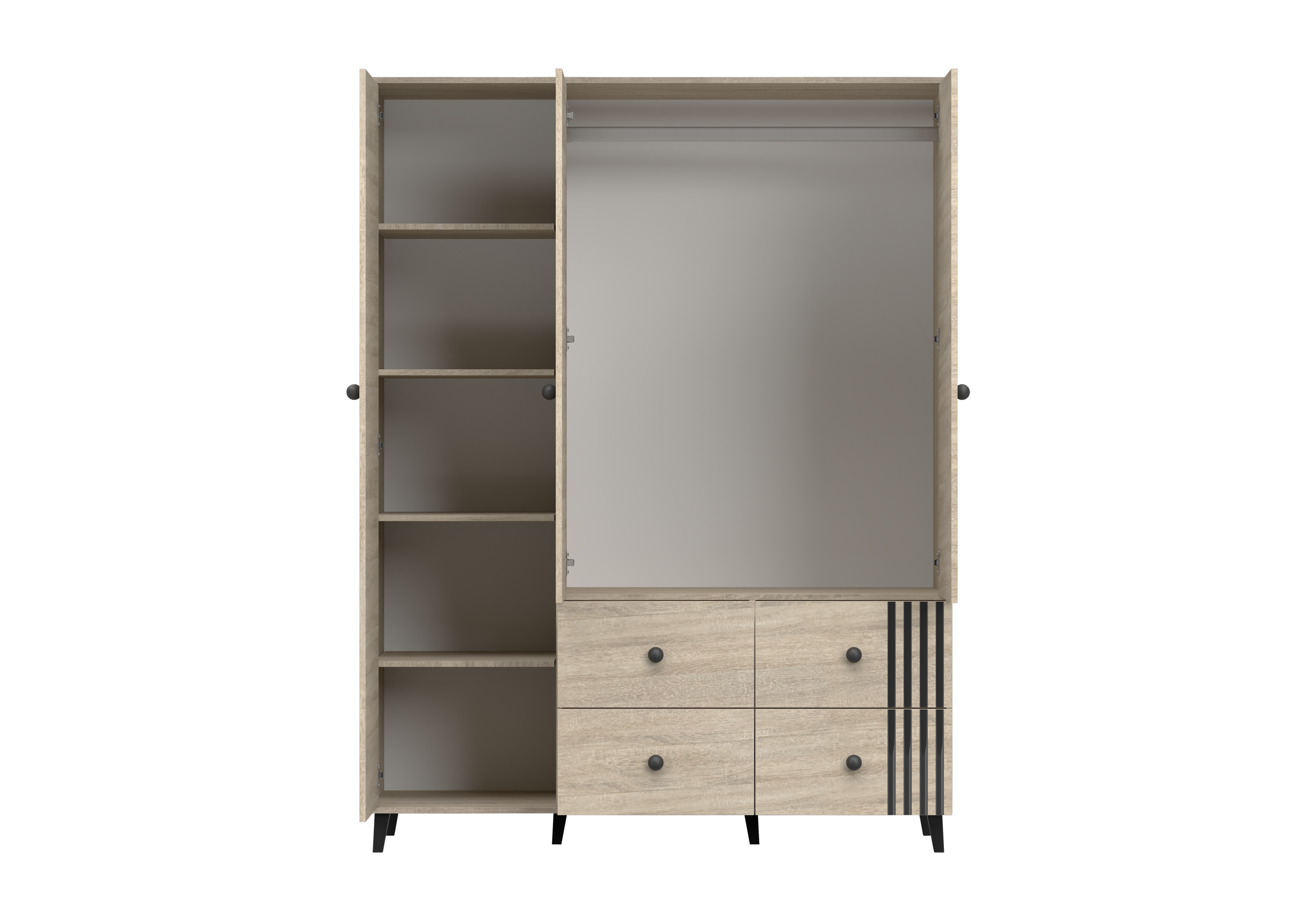 IDZ Šatní skříň FOX 4S3D 19, 150 cm Dub Sonoma/Černá