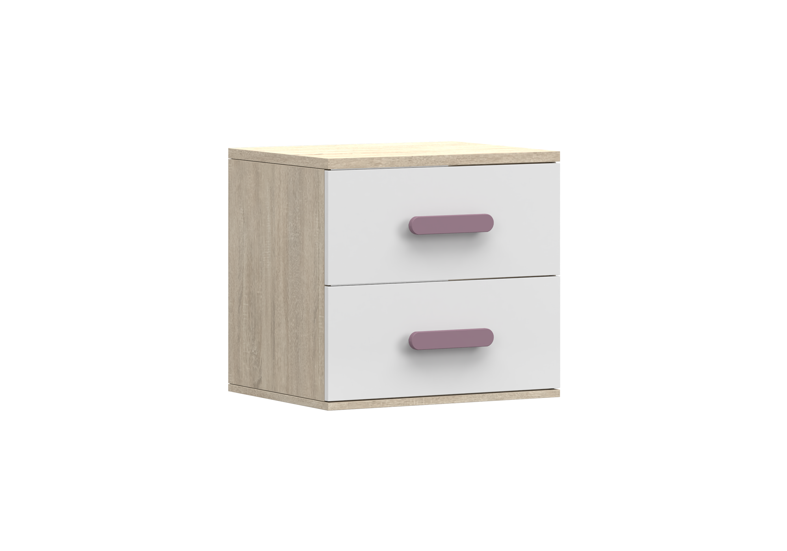 IDZ Noční stolek SMYK III 22, 55 cm Bílá + Dub Sonoma / Barevné úchytky Barva: Růžová