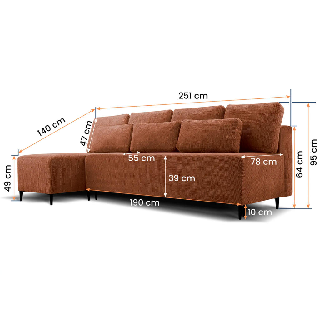 Rohová sedací souprava MAROKO ve tvaru L je spolehlivým parťákem do každého obýváku. Nabízí pohodlné sezení pro rodinu i návštěvy – a když se večer protáhne, snadno ji rozložíš na prostorné lůžko. Uvnitř se skrývá praktický úložný prostor, kam se vejdou deky, peřiny nebo třeba tvoje oblíbené dobroty. Potahy jsou ušité z tkanin s certifikací OEKO-TEX®, takže si můžeš být jistý, že jsou šetrné k tobě i k přírodě. A aby ladila i s tvým vkusem? Vyber si barvu látky – sedačku nabízíme v několika elegantních variantách. ️ Rohové pohodlí ve tvaru L ️ Rozkládací lůžko Úložný prostor Výběr látky Pohodlí na každý den ✨ Elegantní vzhled Jednoduchá montáž V balení najdeš: Doprava až domů Podělte se s námi o Váš názor. Vaše zkušenost pomůže ostatním zákazníkům při výběru té správné postele pro jejich pohodlný spánek. Sedačka je dodávána bez dekorací zobrazených na ilustračních fotografiích. Napište nám, rádi poradíme s čímkoli, co vás zajímá.Pohodlí ve tvaru L - jako L(áska) k odpočinku