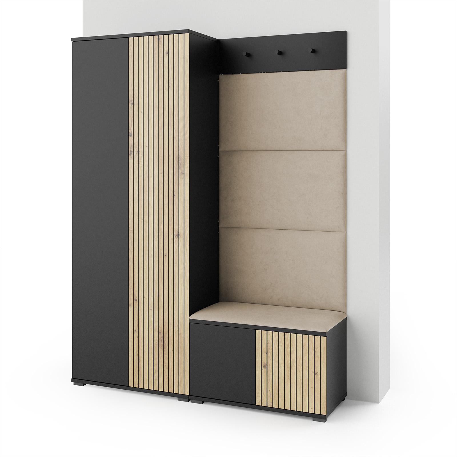 Eka Předsíňová stěna s čalouněnými panely Joey 1 - Černá a Dub Artisan / Světlá béžová 2303
