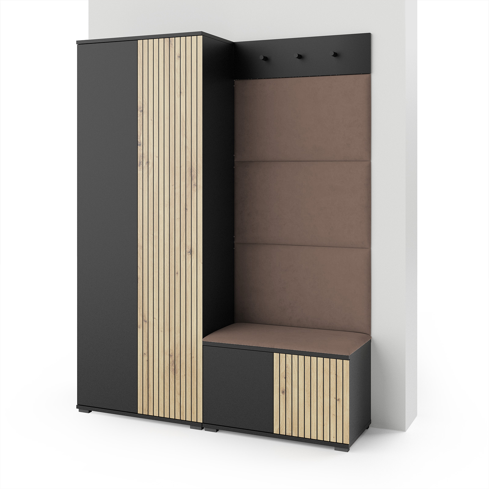 Eka Předsíňová stěna s čalouněnými panely Joey 1 - Černá a Dub Artisan / Světlá hnědá 2306