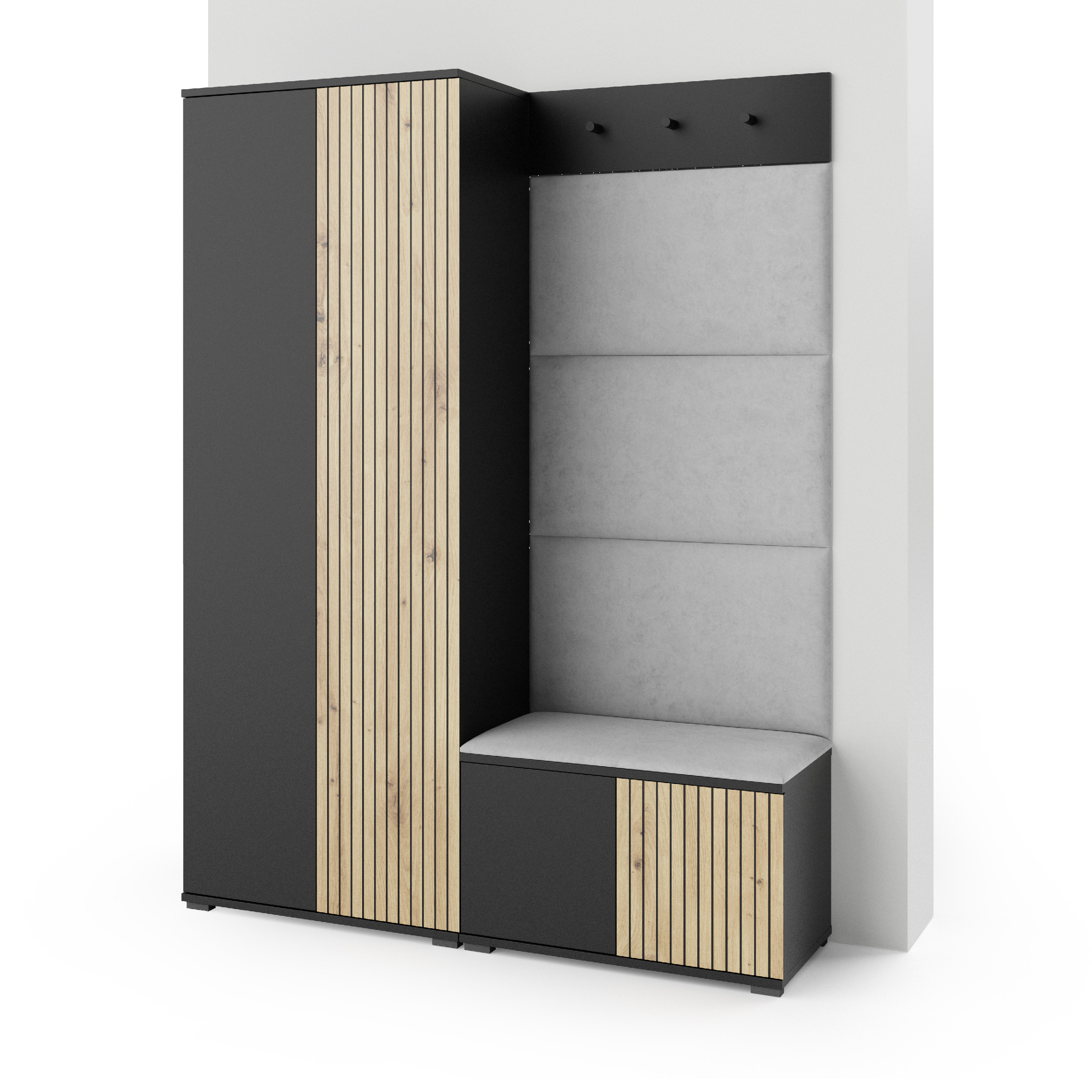 Eka Předsíňová stěna s čalouněnými panely Joey 1 - Černá a Dub Artisan / Šedá 2314