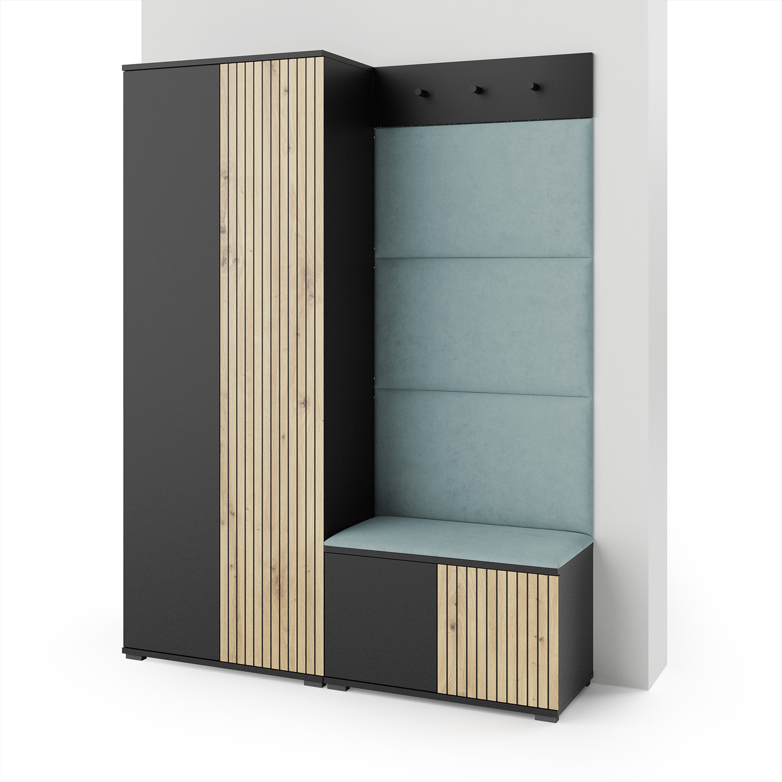 Eka Předsíňová stěna s čalouněnými panely Joey 1 - Černá a Dub Artisan / Světlá modrá 2322
