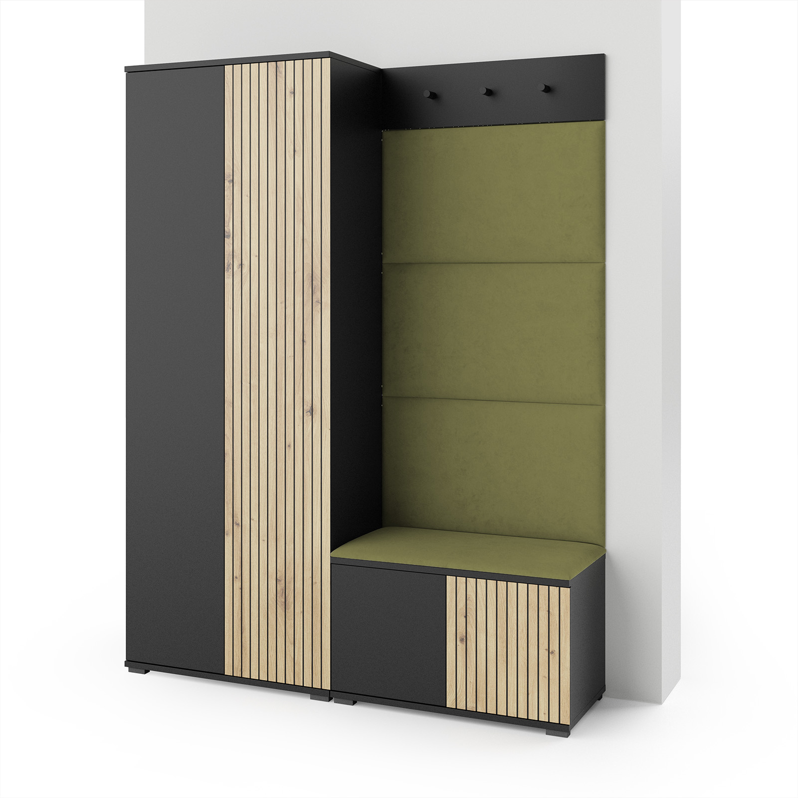 Eka Předsíňová stěna s čalouněnými panely Joey 1 - Černá a Dub Artisan / Khaki zelená 2327