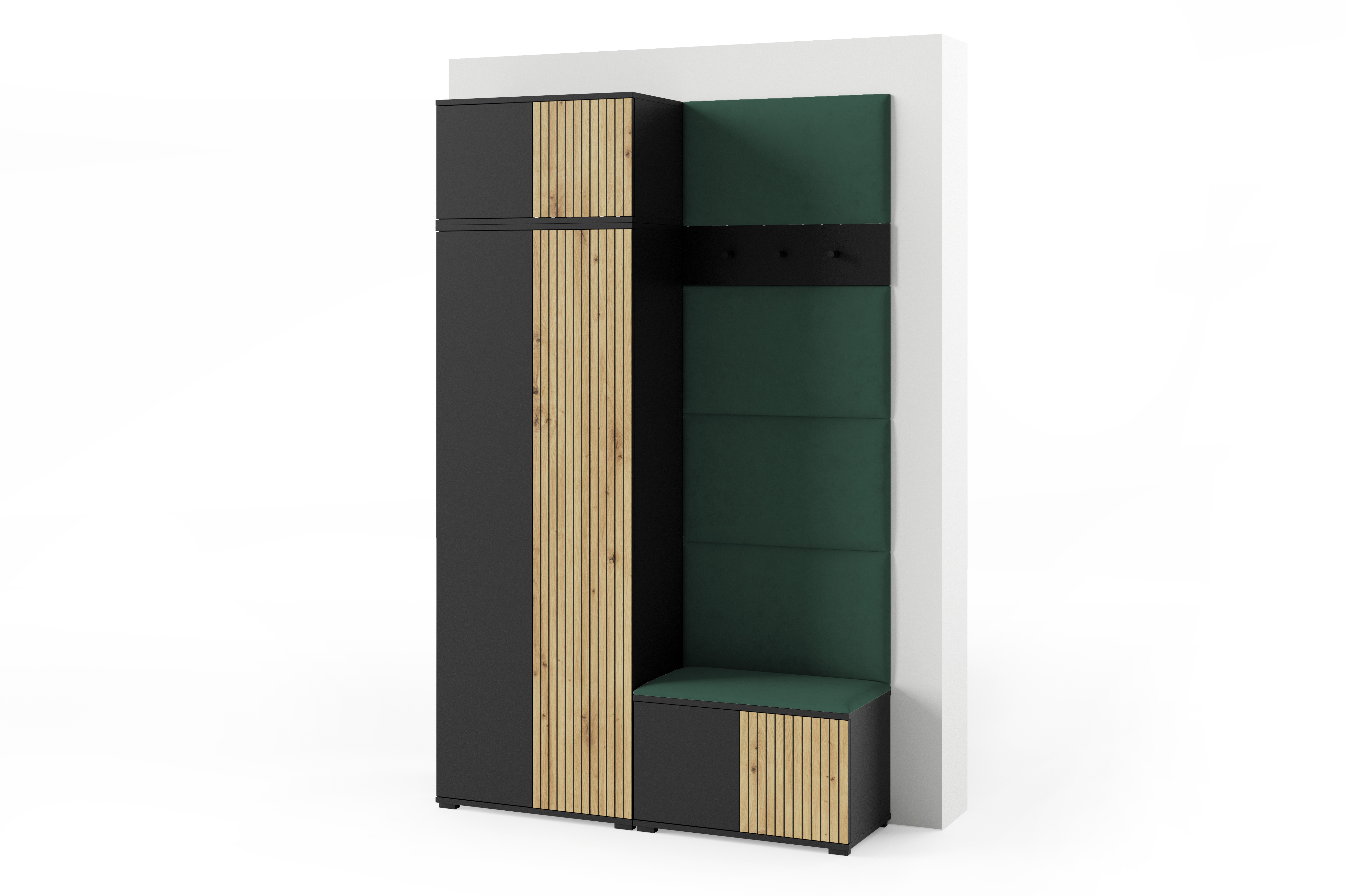 Eka Předsíňová stěna s čalouněnými panely Joey 2 - Černá a Dub Artisan / Tmavá zelená 2328