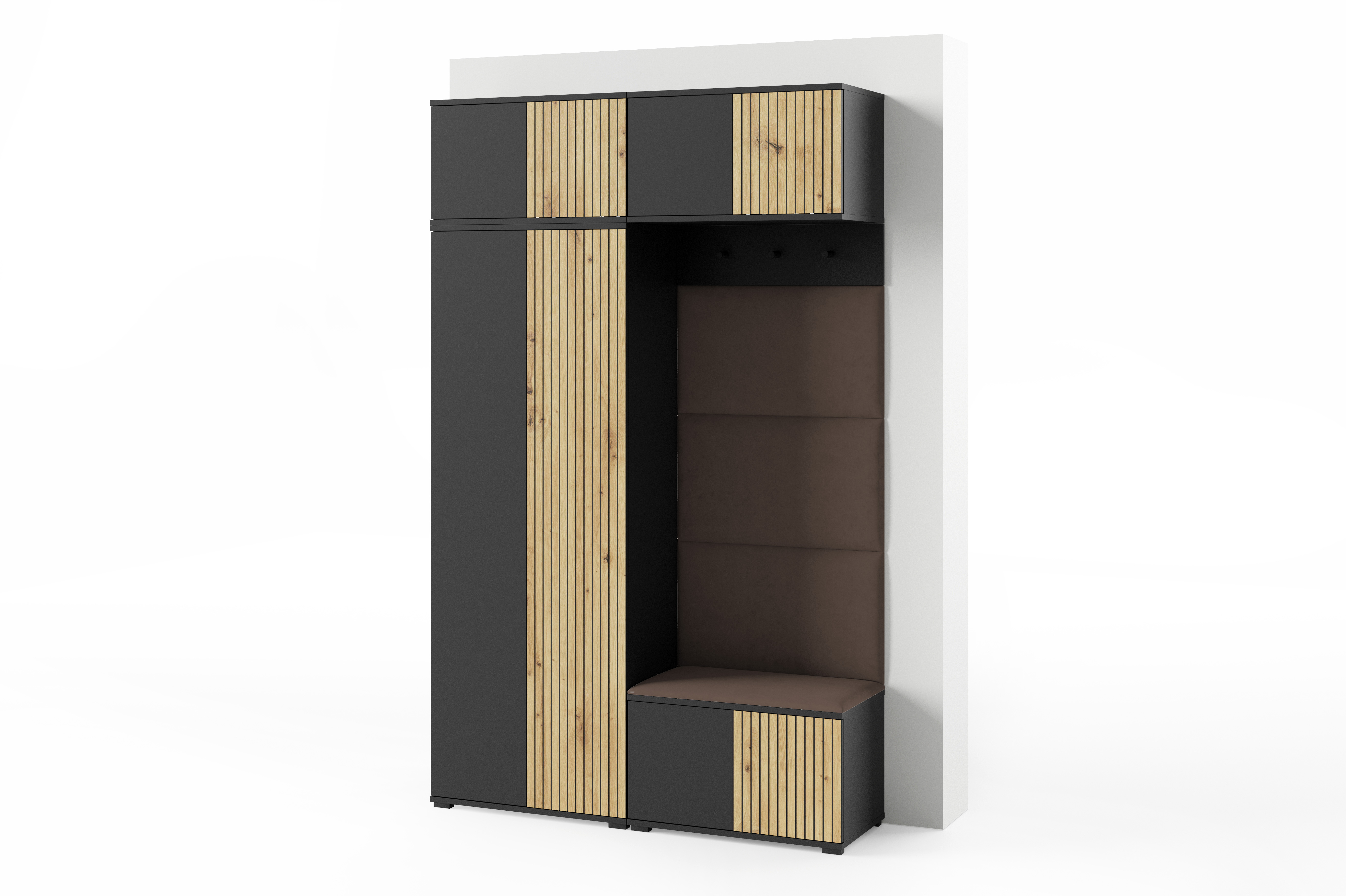 Eka Předsíňová stěna s čalouněnými panely Joey 3 - Černá a Dub Artisan / Tmavá hnědá 2308