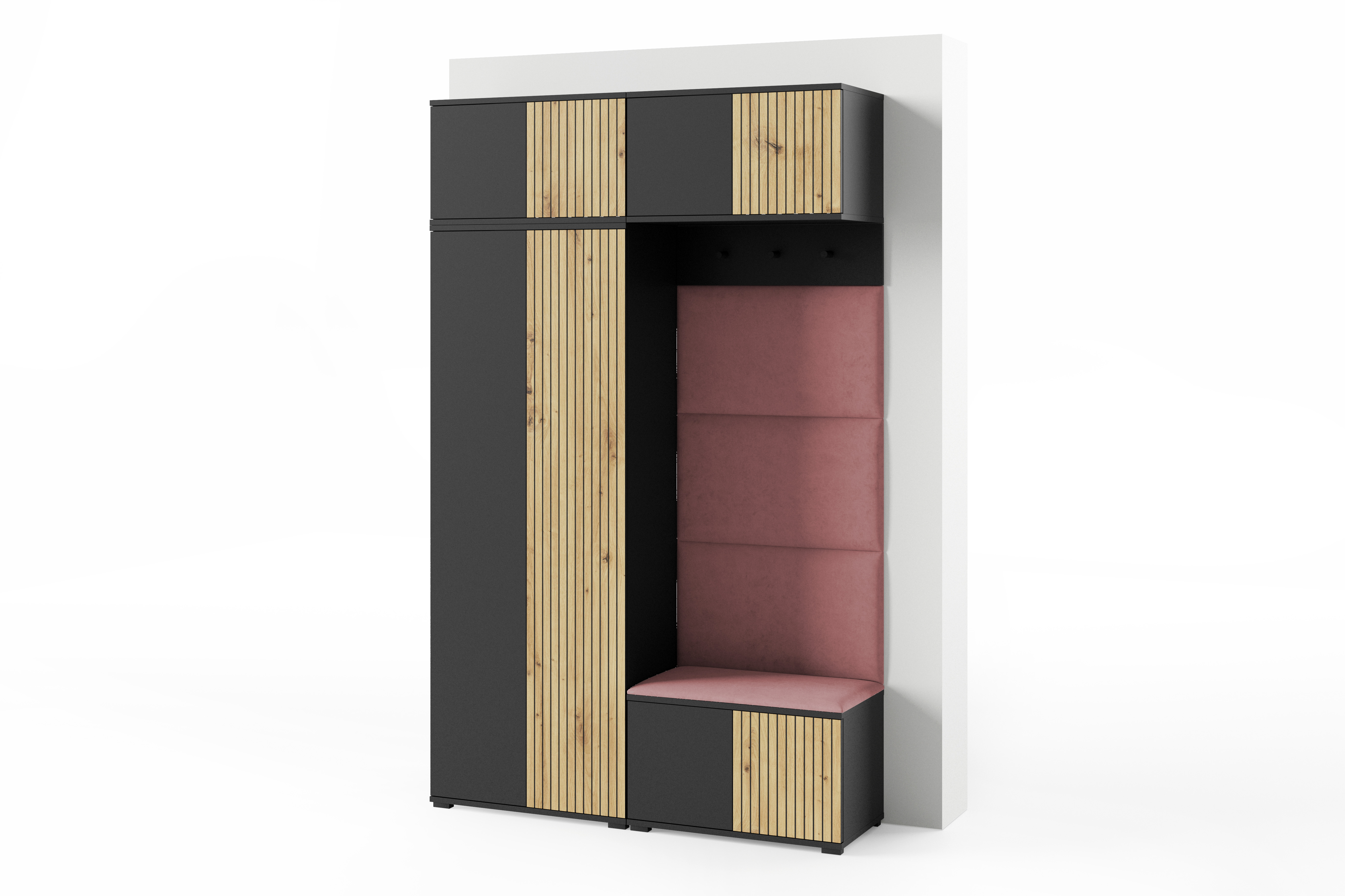 Eka Předsíňová stěna s čalouněnými panely Joey 3 - Černá a Dub Artisan / Tmavá růžová 2323