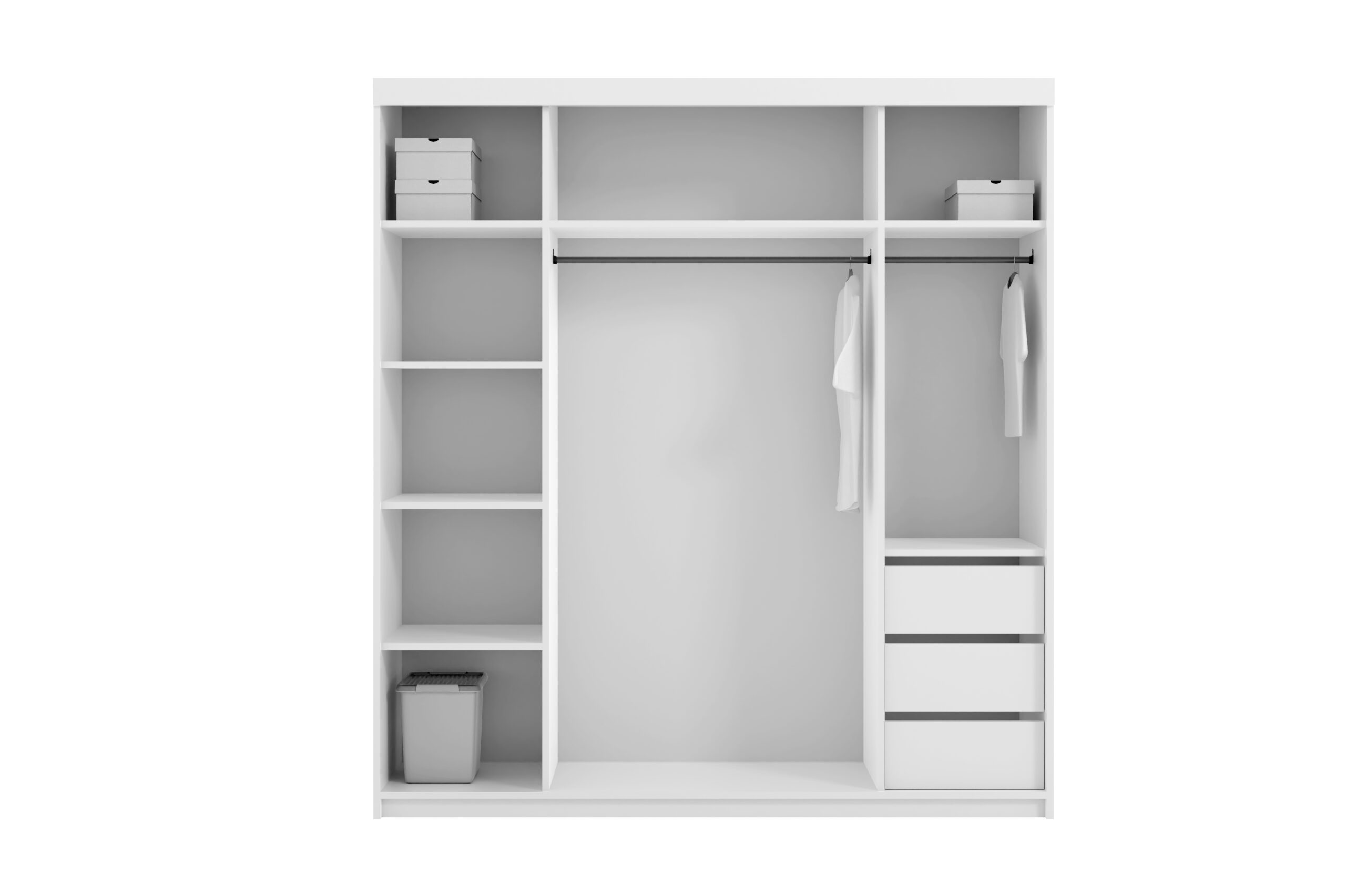 Šatní skříň disponuje posuvným systém otevírání dveří. Tento systém nejenže zajišťuje plynulé a tiché otevírání dveří, ale také výrazně šetří prostor ve srovnání s tradičními otevíracími mechanismy.