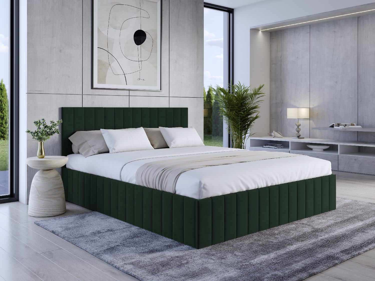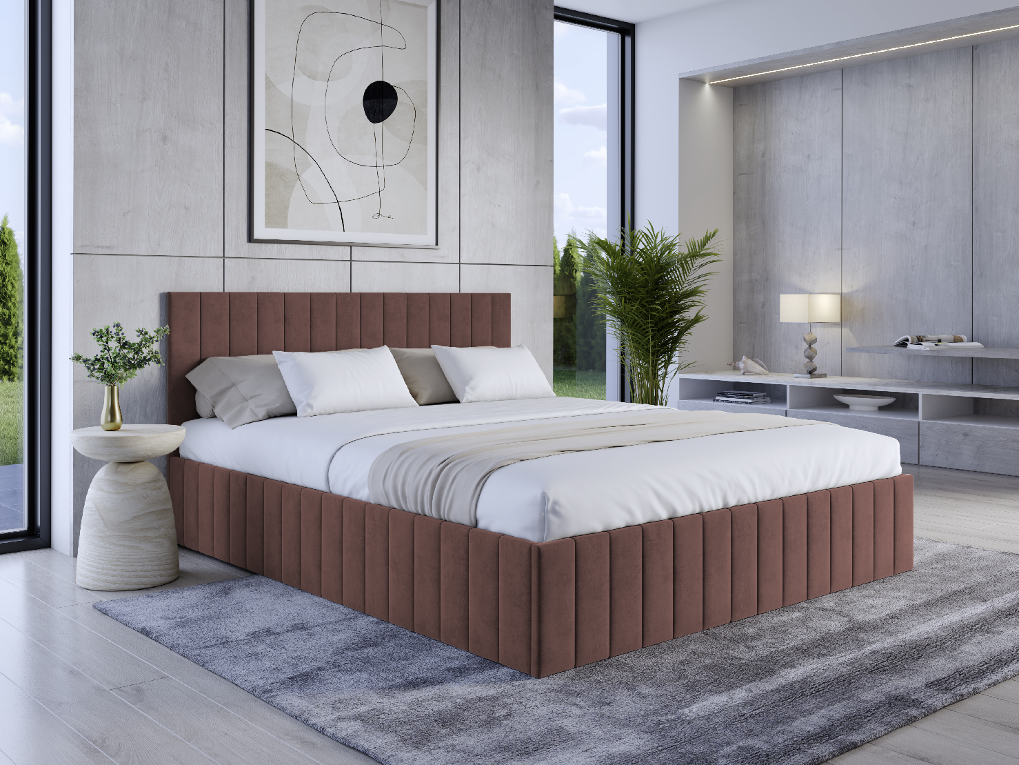 Čalouněné postele se vyznačují pohodlným a měkkým čalouněným čelem a bočními stranami. Tyto postele jsou obvykle vyrobeny z pevného rámu a jsou opatřeny pevnými rošty. Výplň čela a bočních stran postele bývá vyrobena z měkkých materiálů, jako je tkanina nebo kůže, a může být doladěna různými detaily, jako jsou zdobené knoflíky, aplikace nebo švy. Tyto postele mohou být dodávány v různých velikostech, barvách a stylech, což jim umožňuje být umístěny do různých typů interiérů, od moderního po tradiční. Navíc čalouněné postele nabízejí dostatek prostoru pro uskladnění, jako jsou úložné prostory pod matraci.