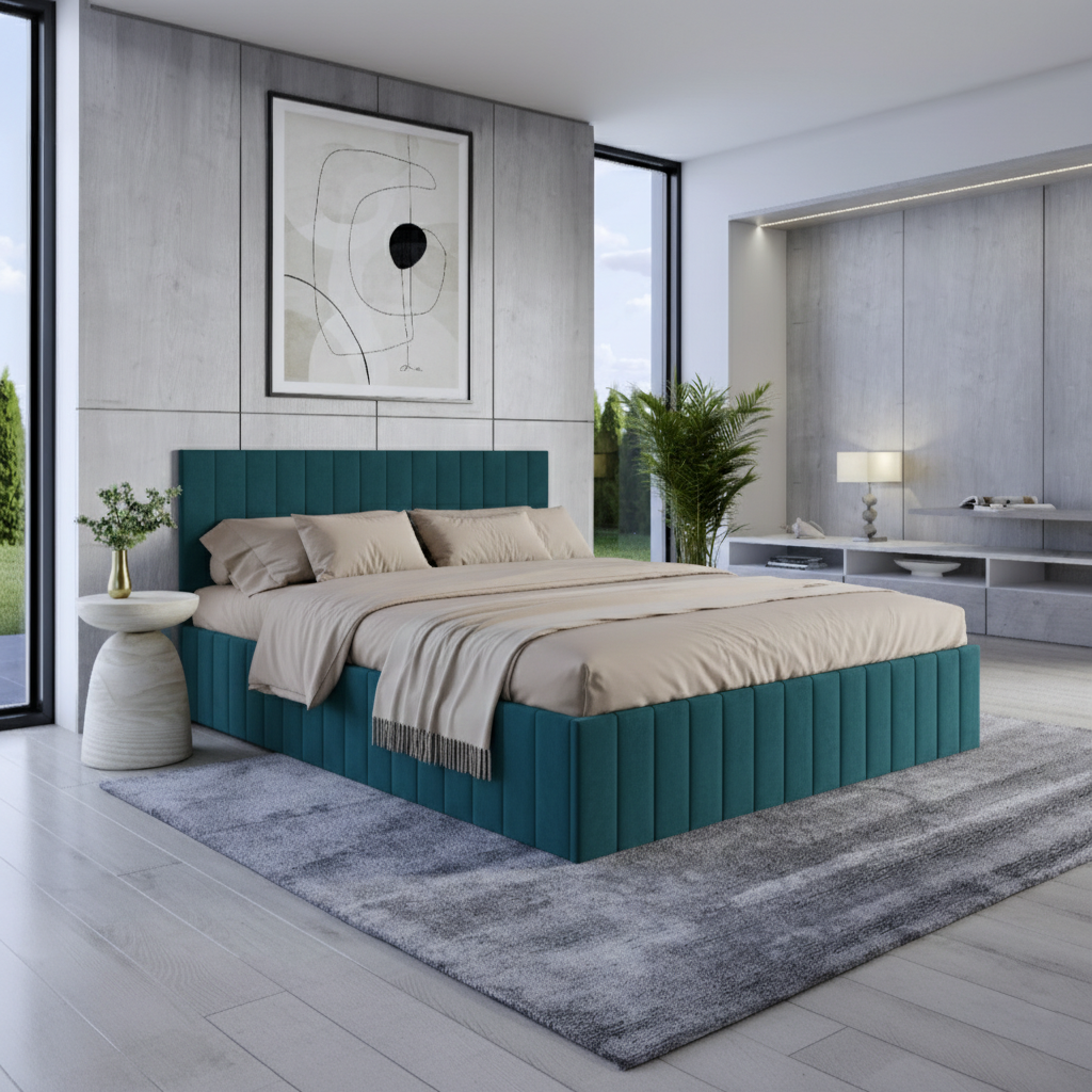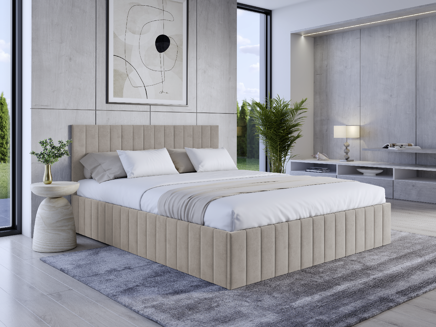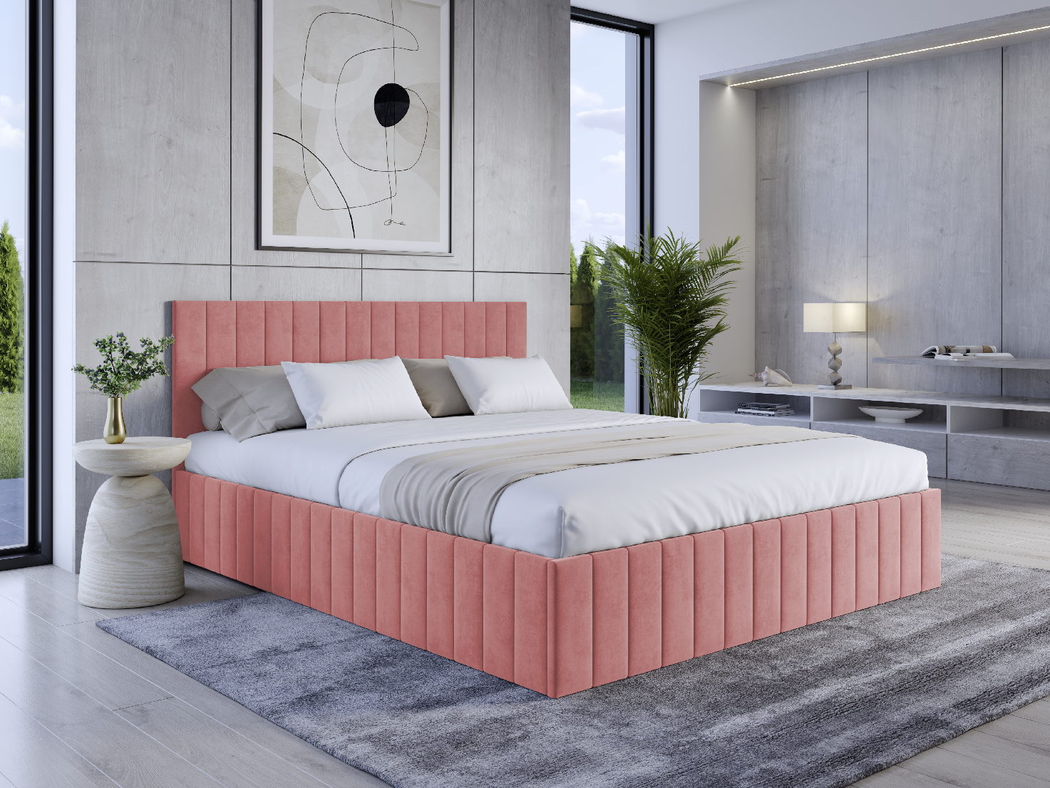 Čalouněné postele se vyznačují pohodlným a měkkým čalouněným čelem a bočními stranami. Tyto postele jsou obvykle vyrobeny z pevného rámu a jsou opatřeny pevnými rošty. Výplň čela a bočních stran postele bývá vyrobena z měkkých materiálů, jako je tkanina nebo kůže, a může být doladěna různými detaily, jako jsou zdobené knoflíky, aplikace nebo švy. Tyto postele mohou být dodávány v různých velikostech, barvách a stylech, což jim umožňuje být umístěny do různých typů interiérů, od moderního po tradiční. Navíc čalouněné postele nabízejí dostatek prostoru pro uskladnění, jako jsou úložné prostory pod matraci.