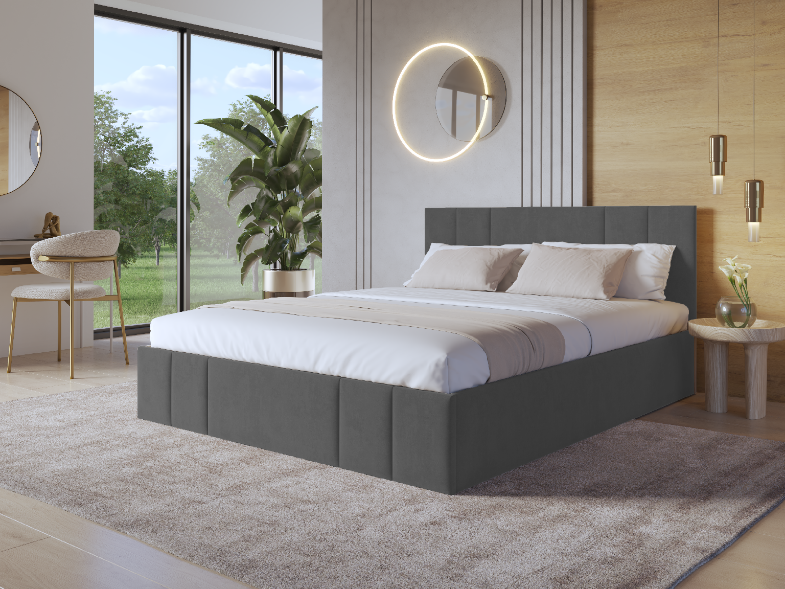 Čalouněná postel SAMANTA s moderním designem je vybavena lamelovým roštem zajišťující optimální podporu Vašeho těla během spánku. Čalouněná postel bez matrace umožňuje zvolit takovou matraci, která bude nejlépe odpovídat Vašim potřebám.