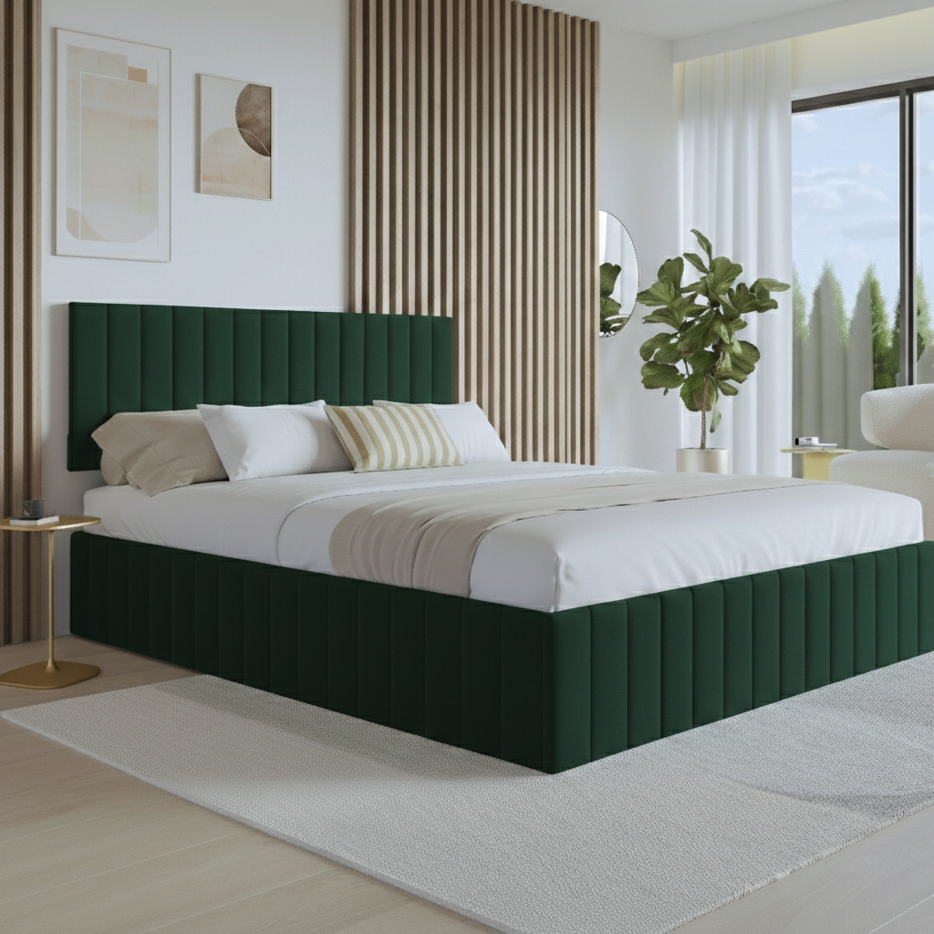 Čalouněné postele bez hlavního čela jsou moderním nábytkem, který se odlišuje od tradičních postelí tím, že nemá tradiční velké a těžké hlavní čelo, což umožňuje ušetřit prostor a zjednodušit celkový vzhled postele. Tyto postele jsou vyrobeny z pevných rámů a jsou opatřeny pevnými rošty, aby poskytovaly dostatek opory a pohodlí. Vzhledem k tomu, že nemá tradiční hlavní čelo, je obvykle navržena tak, aby měla čisté a jednoduché linie. Díky absenci čela mají tyto postele neomezené možnosti umístění - lze ji umístit kamkoli a jakkoliv se Vám líbí.