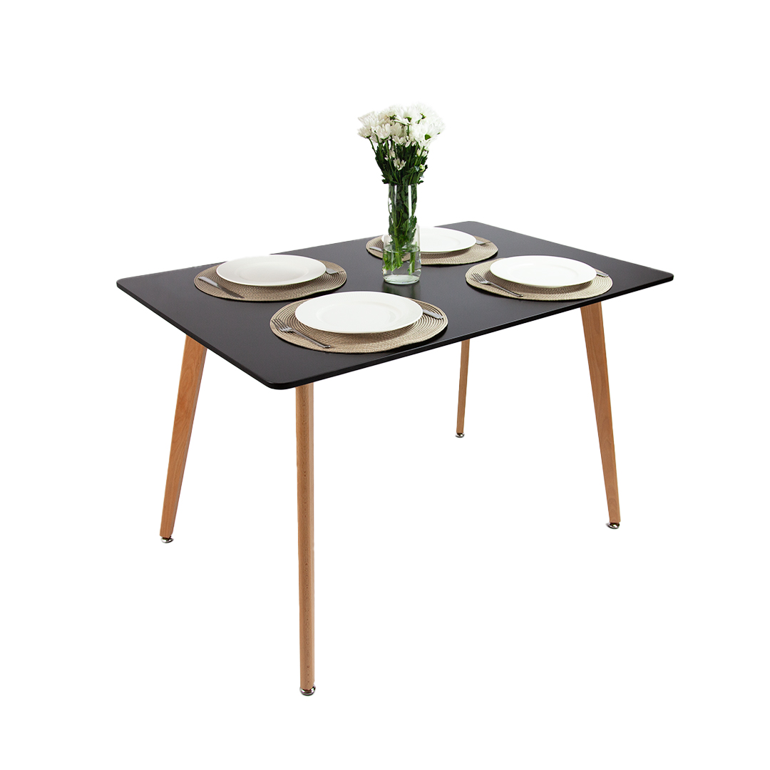 Objevte náš elegantní jídelní stůl s černou deskou a dřevěnými nohami, ideální pro moderní interiéry. S rozměry 120x80 cm nabízí dostatek místa pro pohodlné posezení. Kvalitní konstrukce zajišťuje stabilitu a odolnost, což ho činí skvělou volbou pro vaši jídelnu nebo kuchyň. Černá deska stolu je odolná a snadno se udržuje, což zajišťuje dlouhou životnost. Navíc je produkt pečlivě zabalen pro bezpečnou přepravu a ochranu před poškozením. Spojuje stylový design s praktickými funkcemi, aby váš domov byl nejen krásný, ale i funkční.
