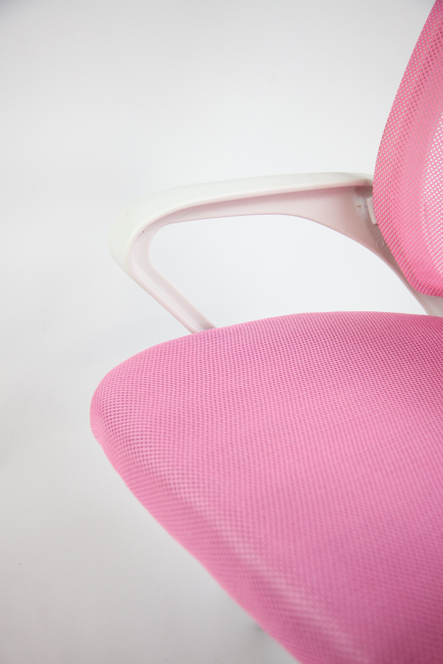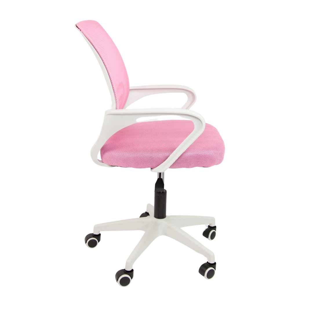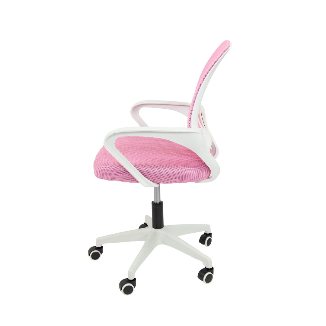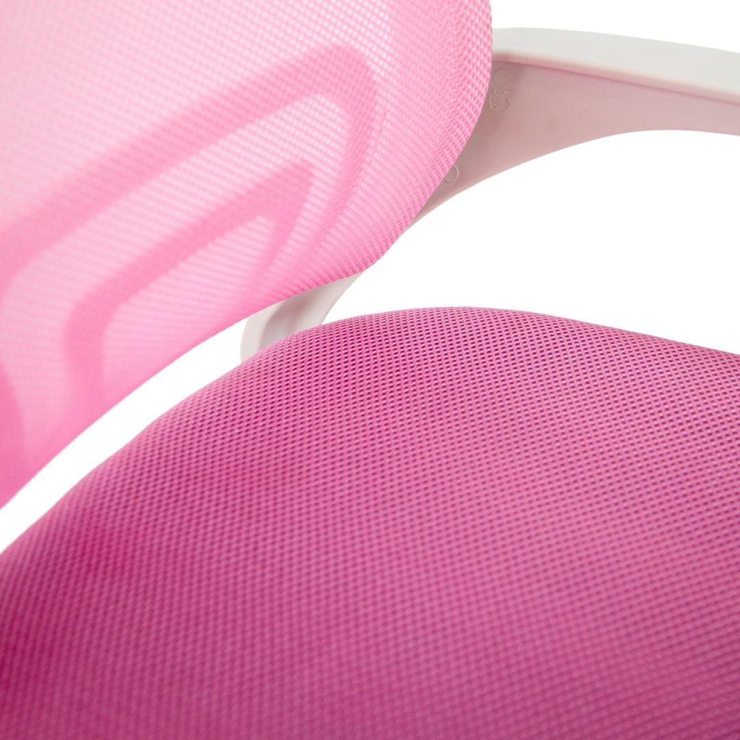 Růžová látka je nejen esteticky příjemná, ale také měkká na dotek a odolná vůči opotřebení, zajišťující dlouhou životnost a trvalý komfort. Bílá konstrukce dodává židli lehkou a sofistikovanou estetiku, která se hodí do každého moderního kancelářského nebo domácího prostoru.