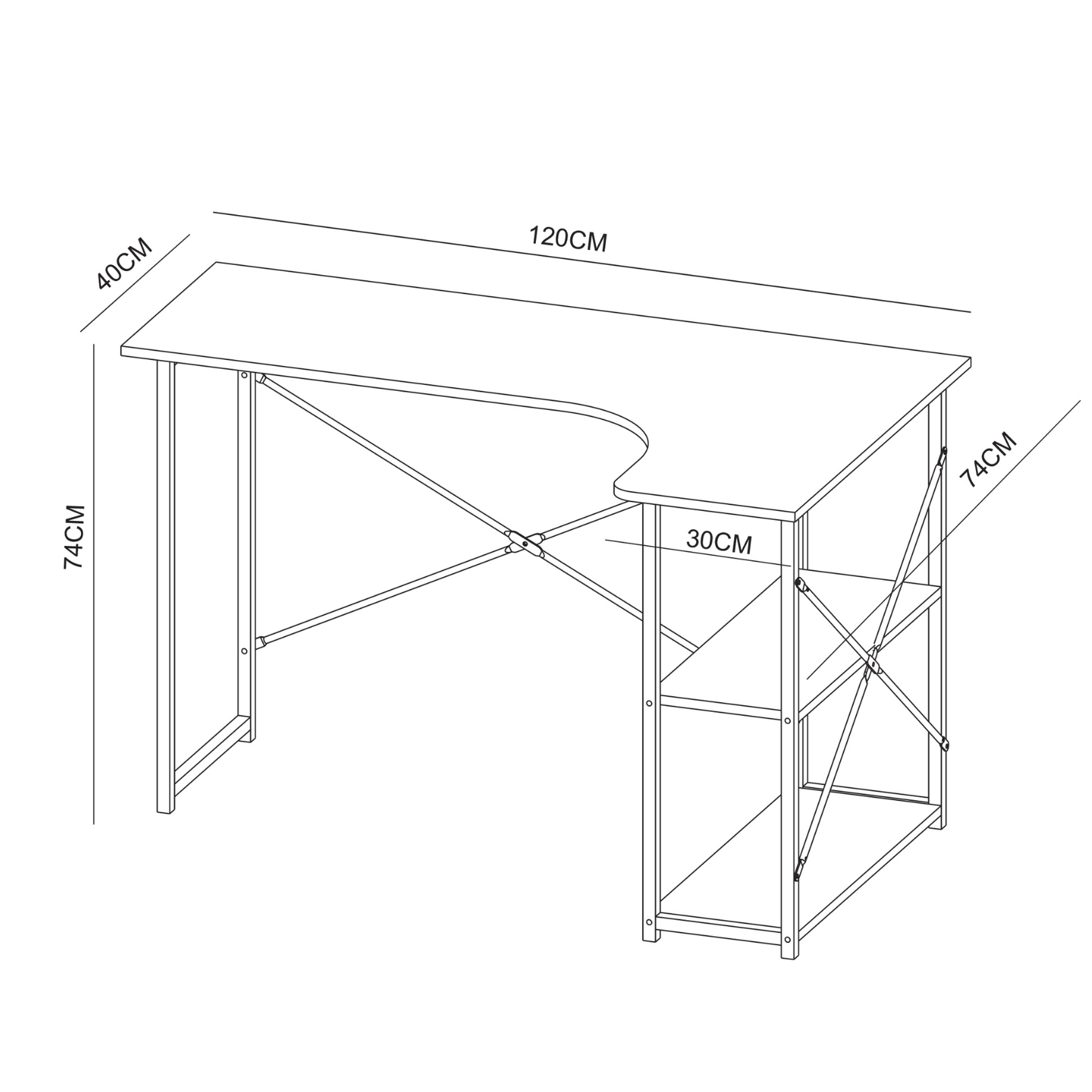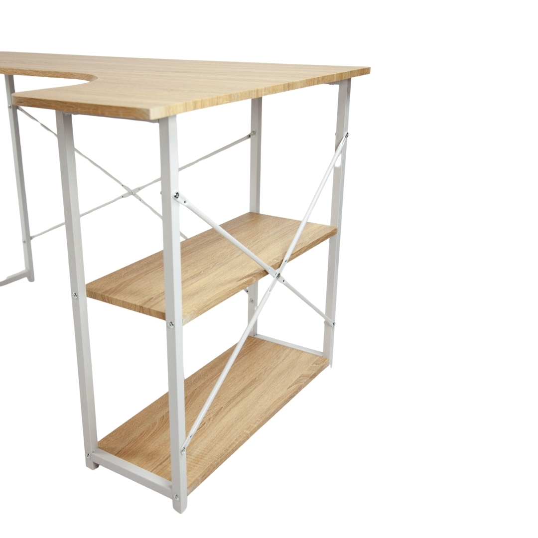 Rohový Pracovní Stůl s Policemi a Kovovou Konstrukcí