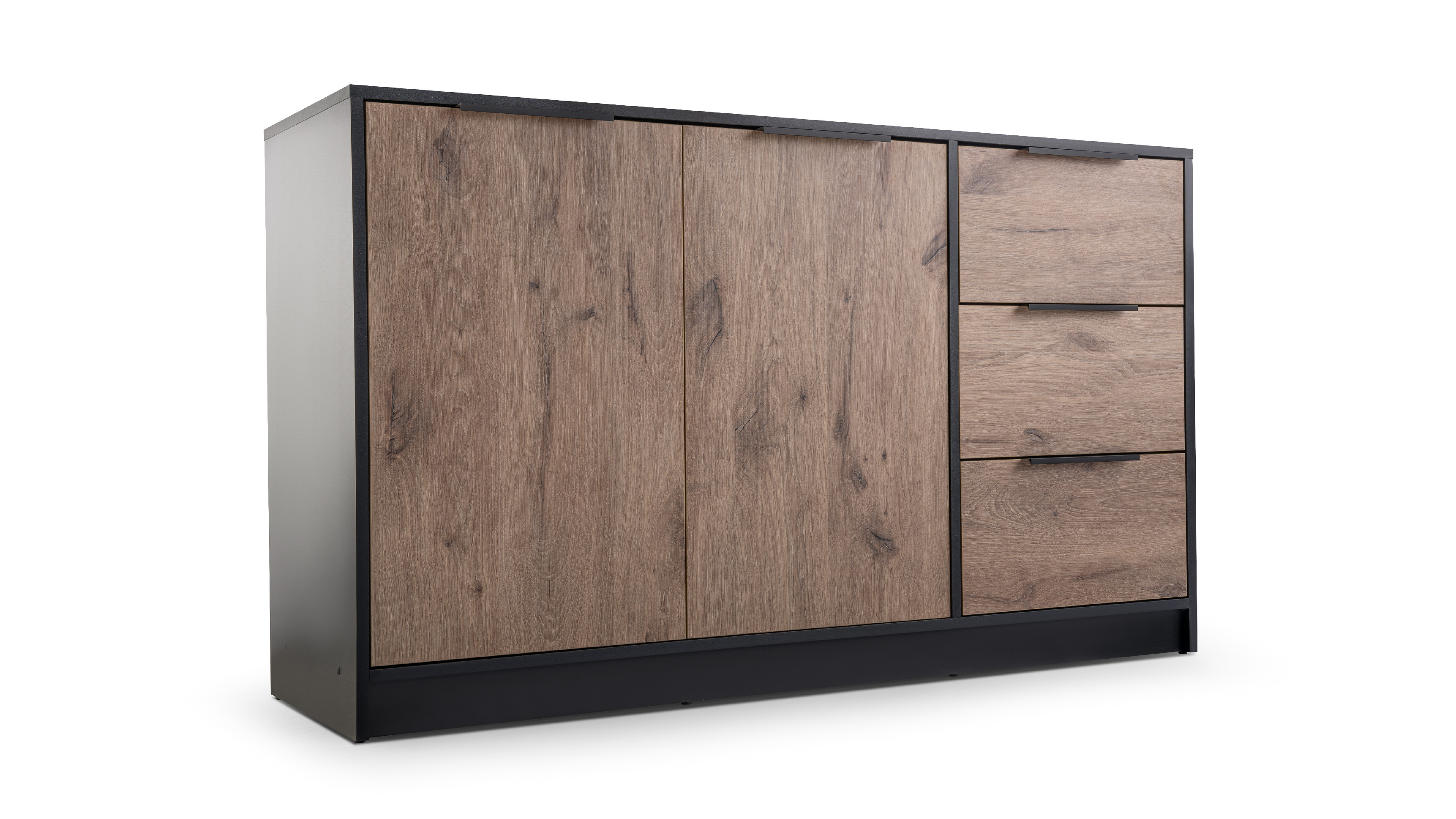 STO Komoda LATI 2D3S, 138 cm Černá/Dub Viking