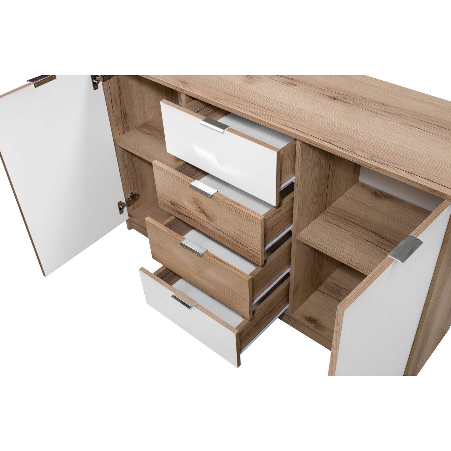 STO Komoda PANAMA, 130 cm Bílá/ Dub přírodní