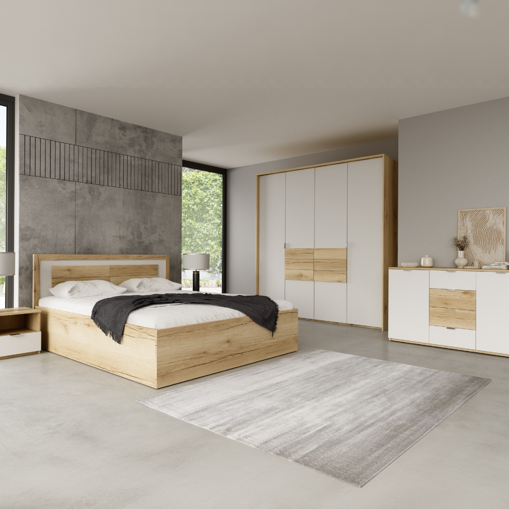 STO Postel PANAMA 160 x 200 cm, Bílá/Dub přírodní