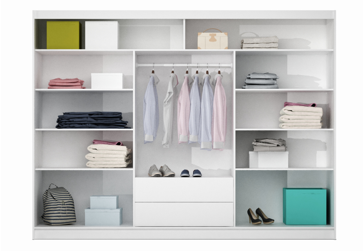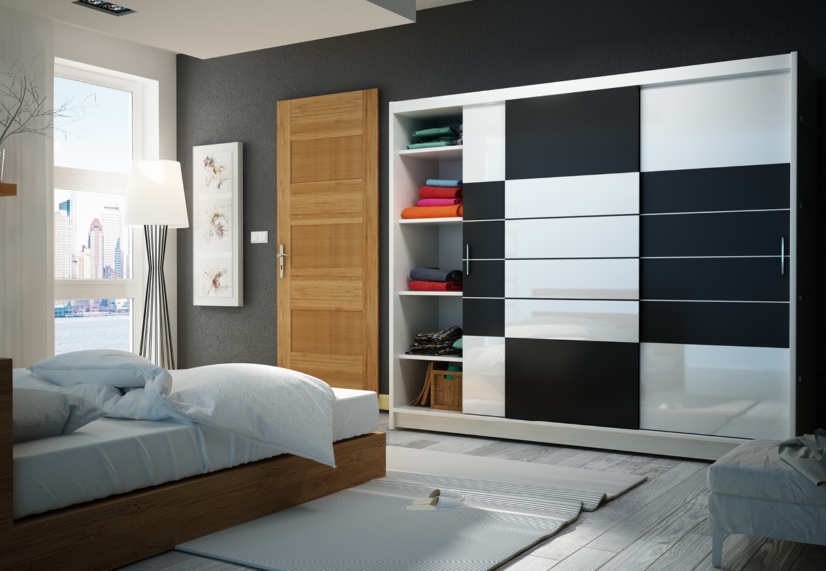 STO Šatní skříň ARUBA 250 cm, Černá / Bílý lesk