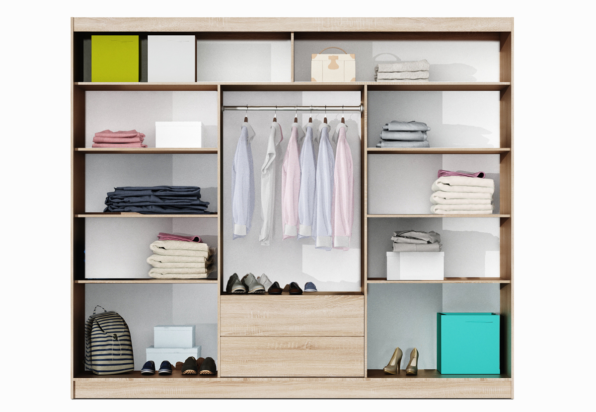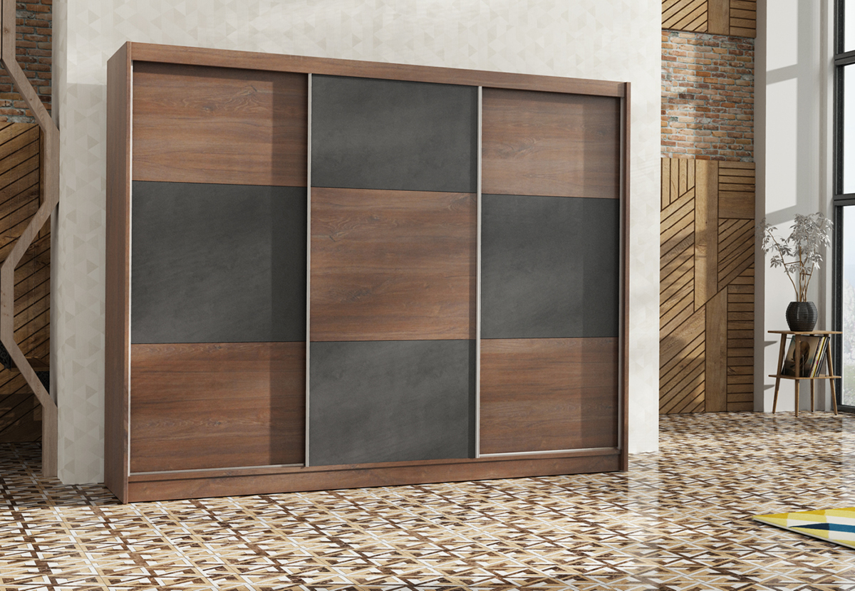 STO Šatní skříň CORDOBA 255 cm, Dub Sterling / Beton