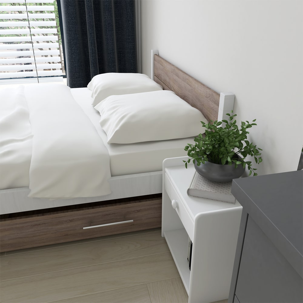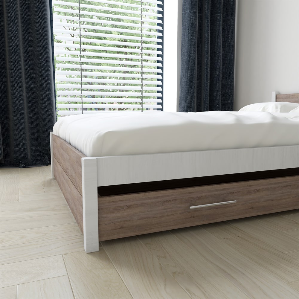 EB Postel z masivu IRIS DOUBLE - 140×200 cm Bílá/DUB LANÝŽ