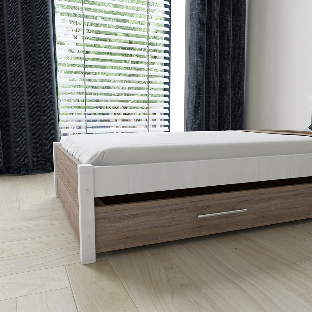 EB Postel z masivu IRIS DOUBLE - 90×200 cm Bílá/DUB LANÝŽ