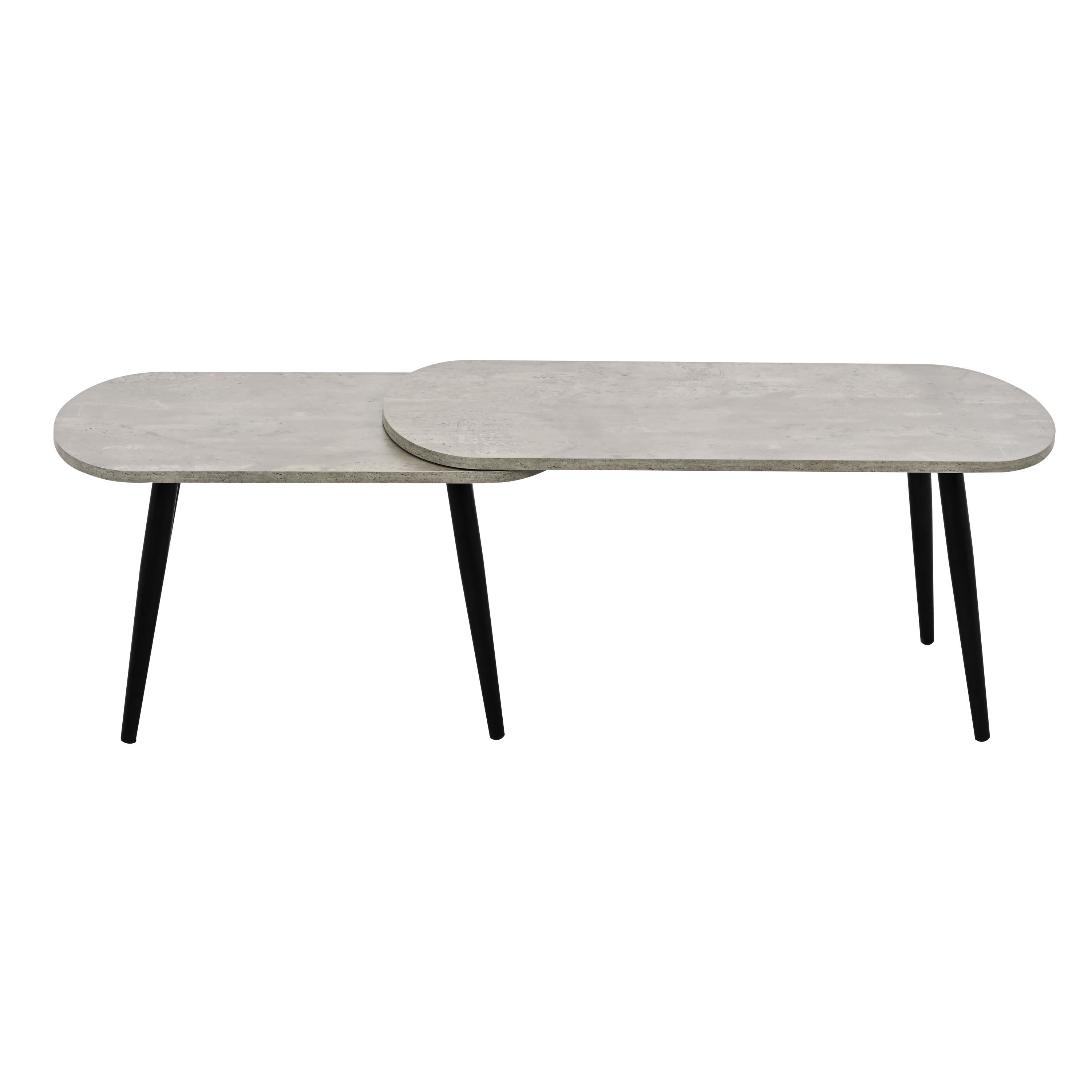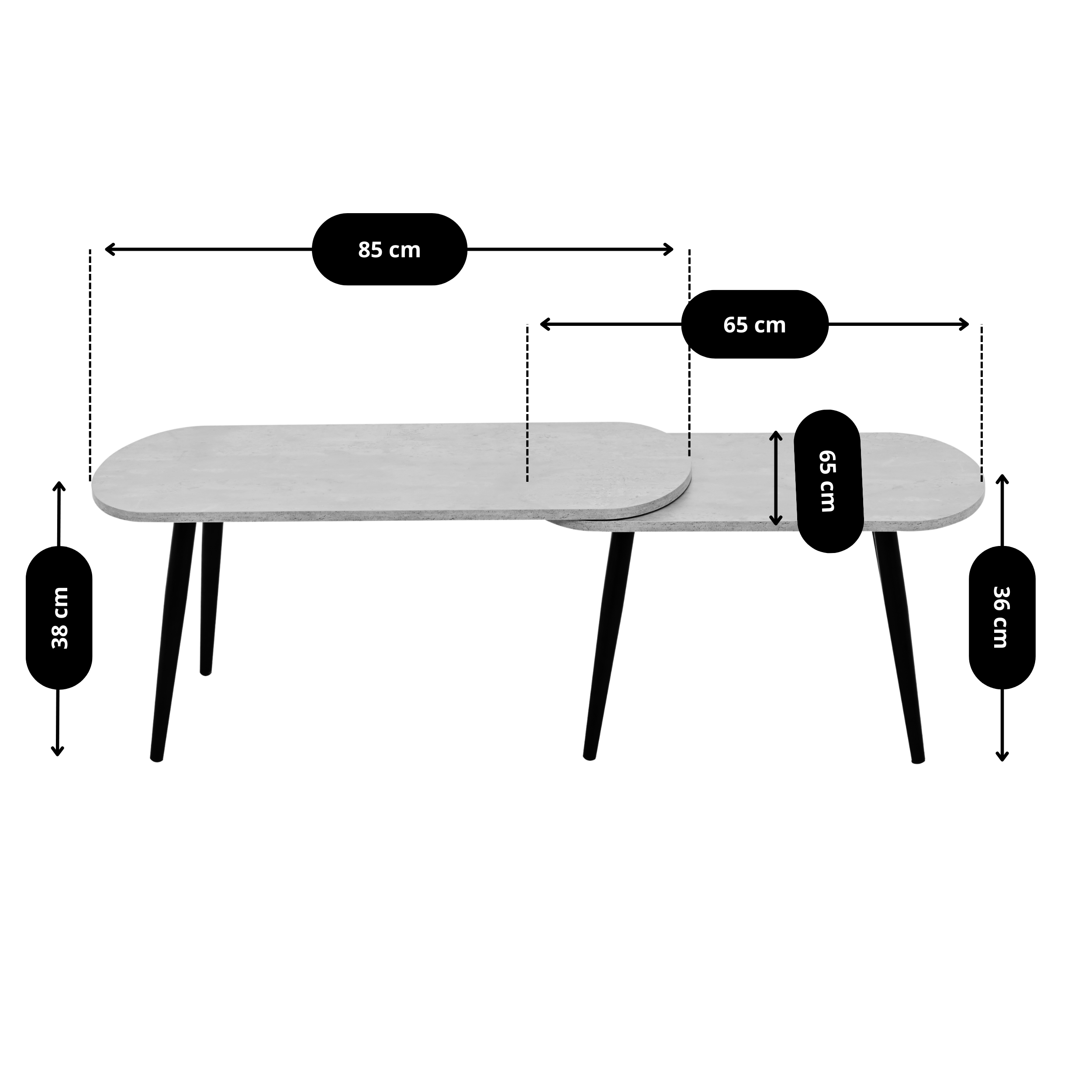 Konferenční stolek Brosco přináší elegantní kombinaci moderního designu a praktického využití. Díky dvěma oválným deskám v betonovém dekoru získáte nejen vizuálně zajímavý kousek, ale i funkční řešení pro každodenní život. Desky lze částečně zasunout pod sebe, což zajišťuje flexibilitu v uspořádání prostoru podle potřeby.