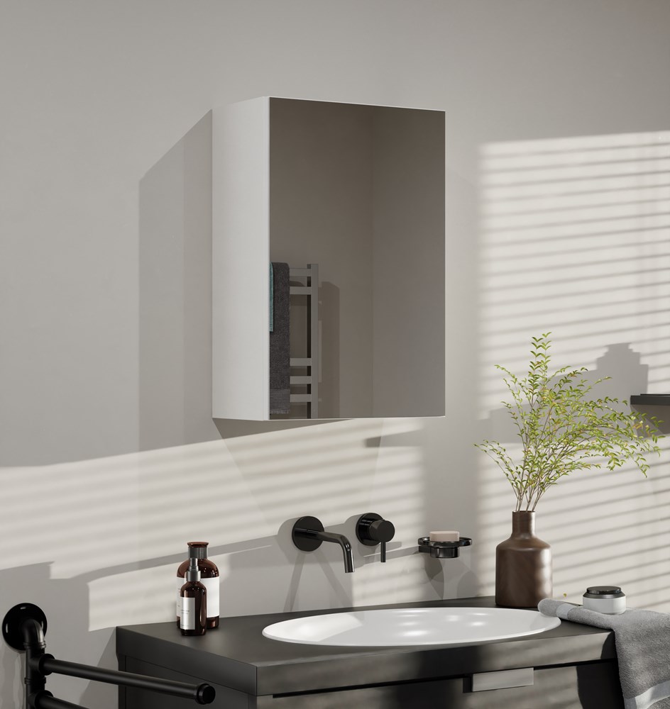 Ideální do malých a středně velkých koupelen, dokonale využívá prostor nad umyvadlem.