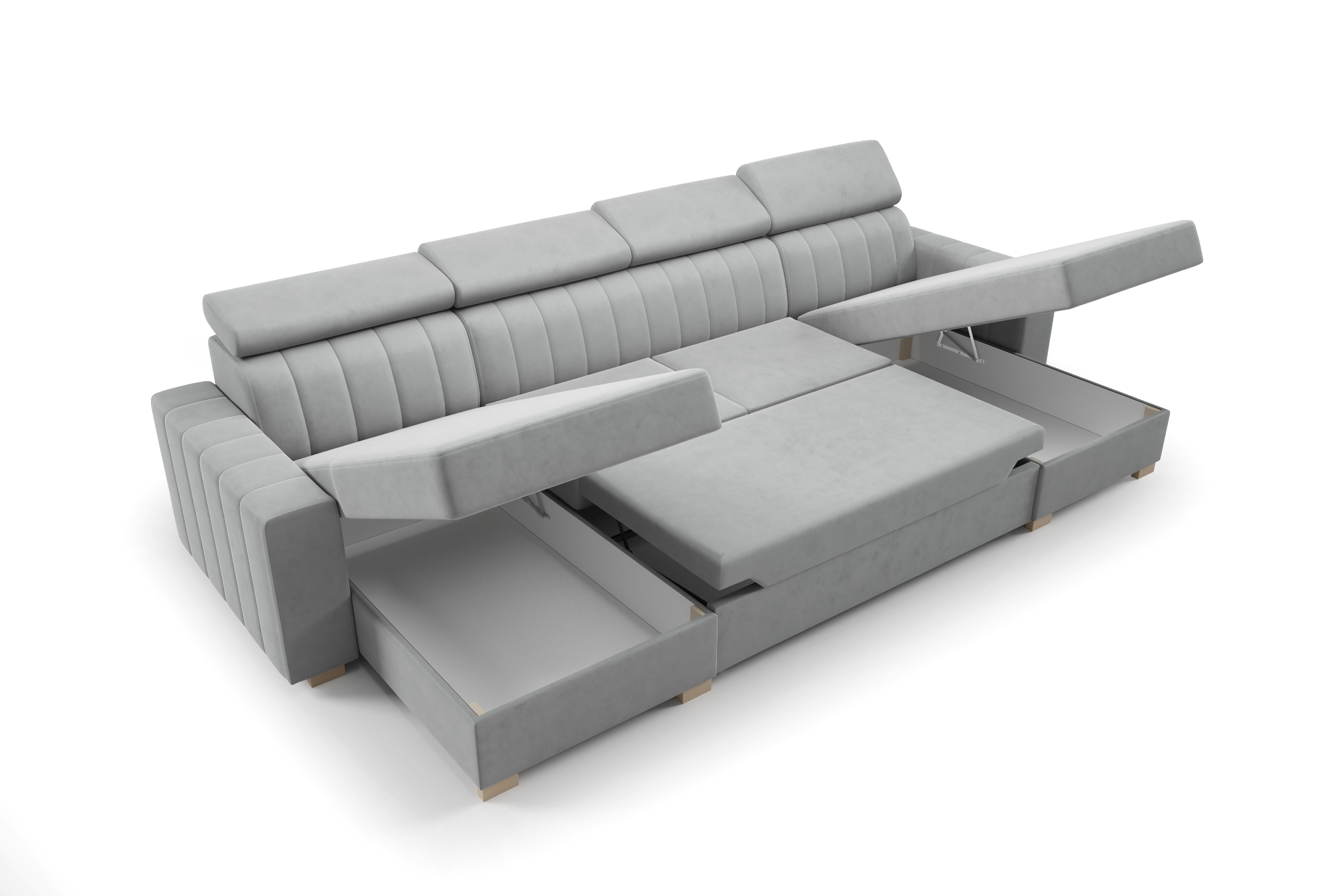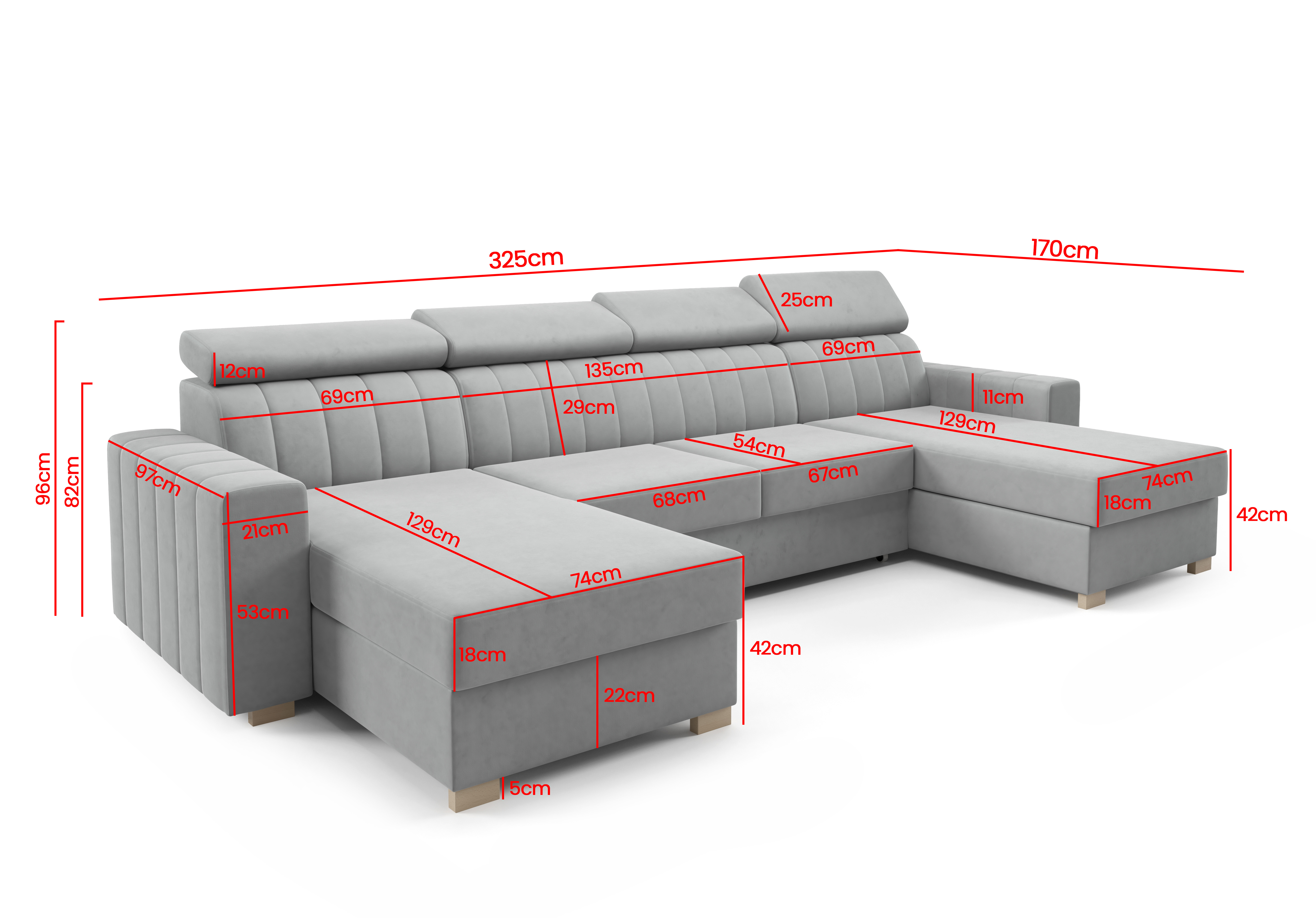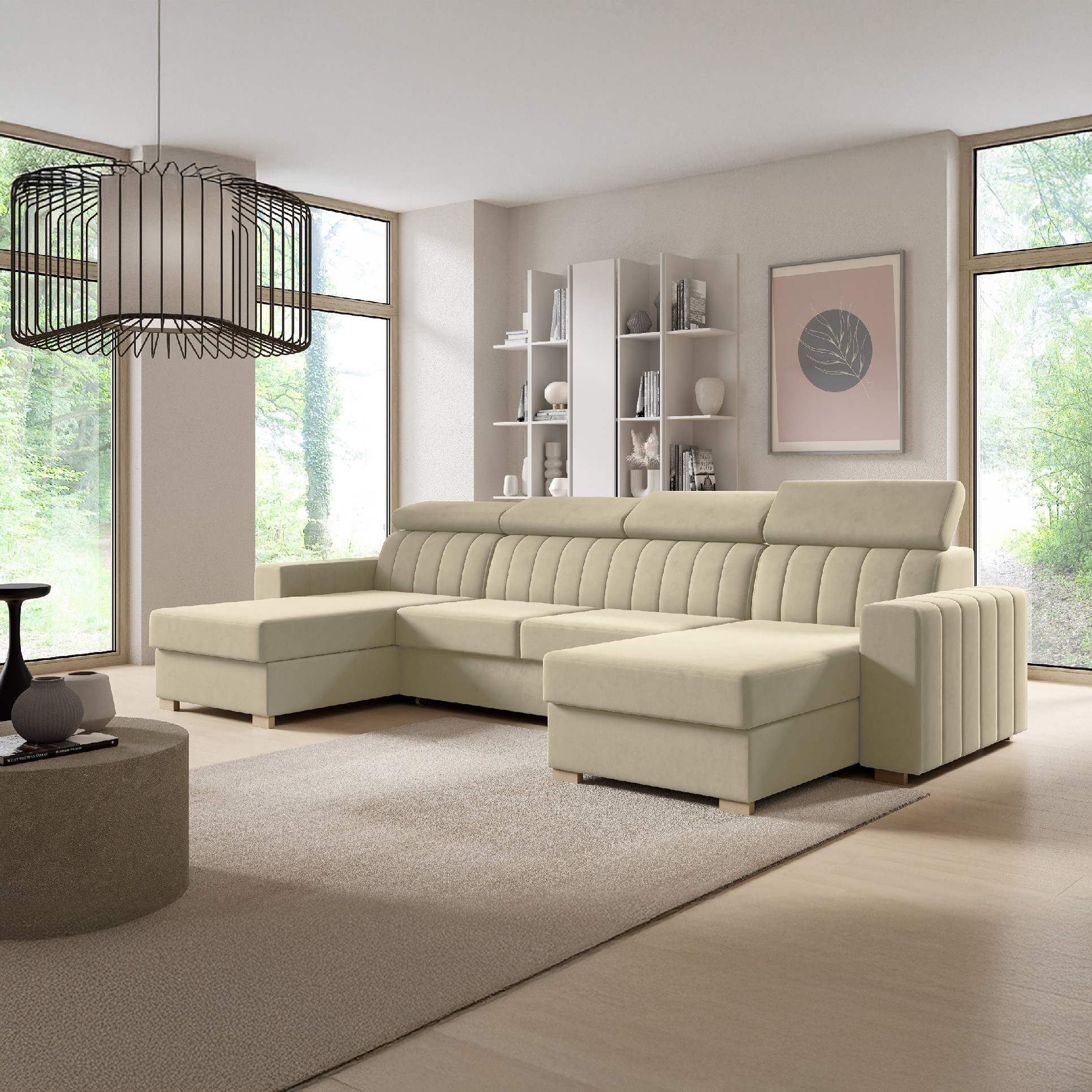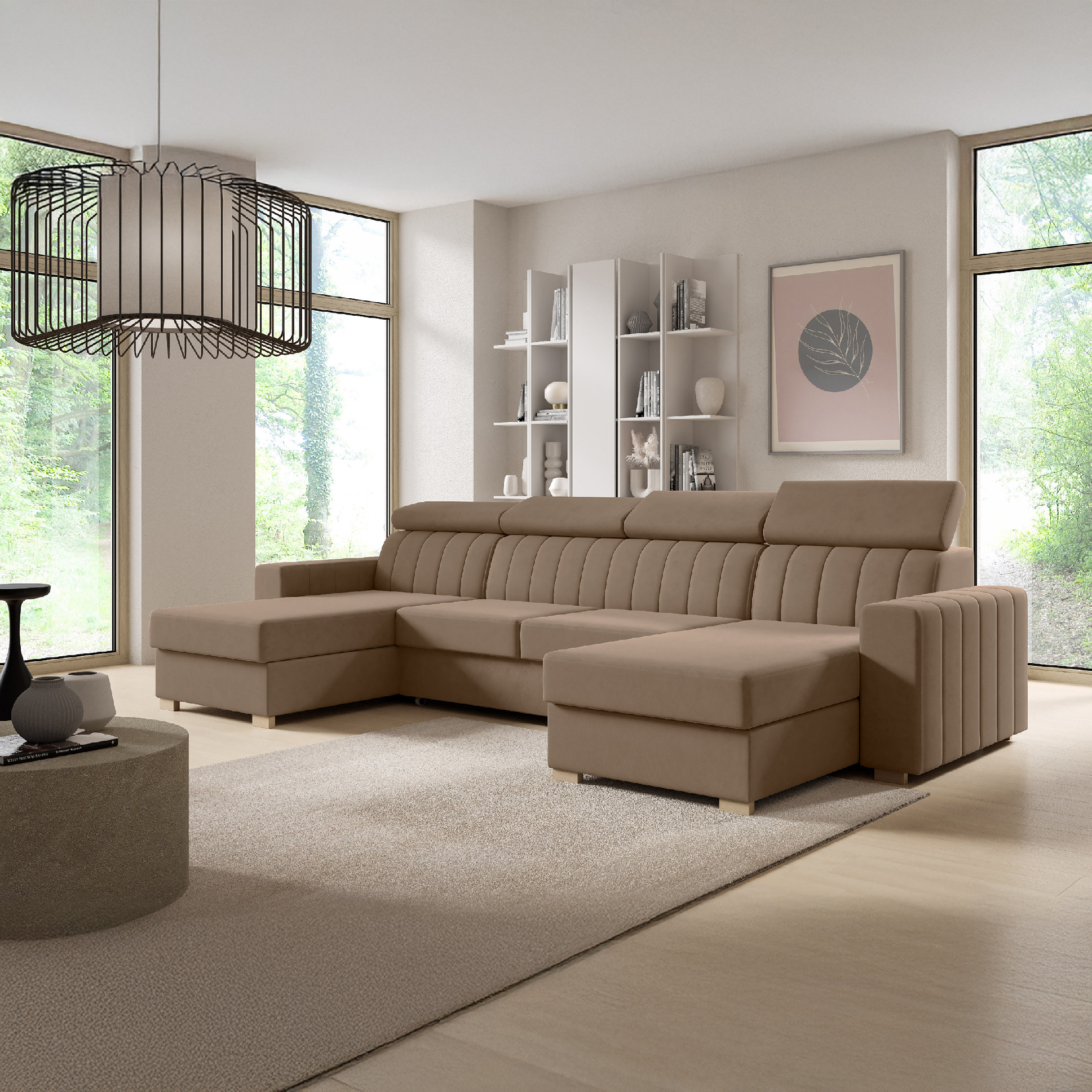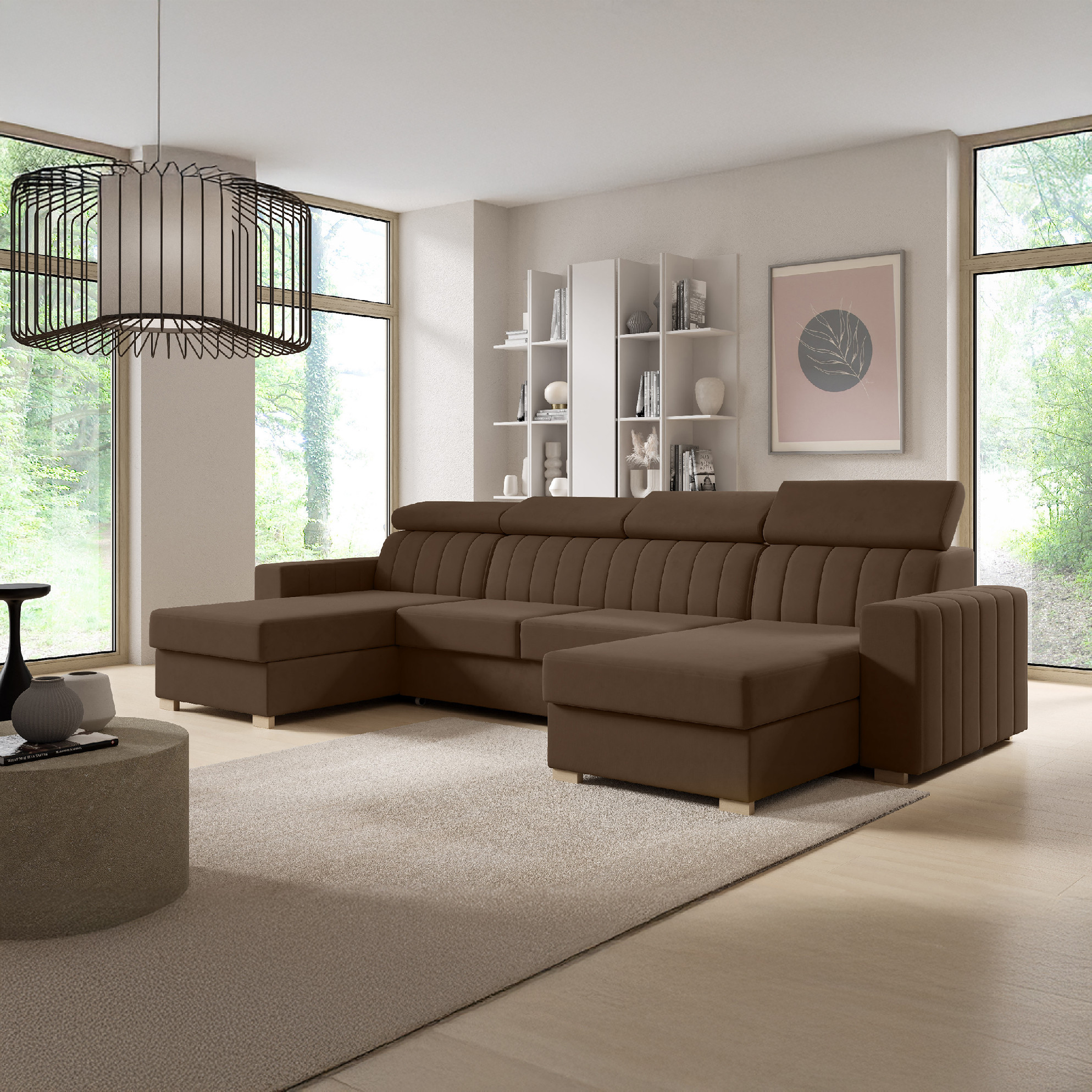 Rohová sedací souprava LAO U je královnou každého obýváku. Nabízí spoustu místa pro celou rodinu i přátele – a když se protáhne večer, snadno se rozloží na prostorné lůžko. Uvnitř se ukrývají dvě velké nádoby na lůžkoviny, kam schováš peřiny, deky nebo třeba tajné zásoby sušenek. Potahy jsou vyrobené z tkanin s certifikací OEKO-TEX®, takže si můžeš být jistý, že jsou šetrné k tobě i přírodě. A aby ladila i s tvým vkusem? Vyber si barvu látky – sedačku nabízíme v několika elegantních variantách. ️ Velkorysý prostor ve tvaru U ️ Rozkládací lůžko Dva úložné prostory Výběr látky Pohodlí na každý den ✨ Elegantní vzhled KRONOS MONOLITH Jednoduchá montáž V balení najdeš: Doprava až domů Podělte se s námi o Váš názor. Vaše zkušenost pomůže ostatním zákazníkům při výběru té správné postele pro jejich pohodlný spánek. Postel je dodávána bez matrace, lůžkovin a dekorací zobrazených na ilustračních fotografiích. Napište nám, rádi poradíme s čímkoli, co vás zajímá.Pohodlí ve tvaru dokonalého U