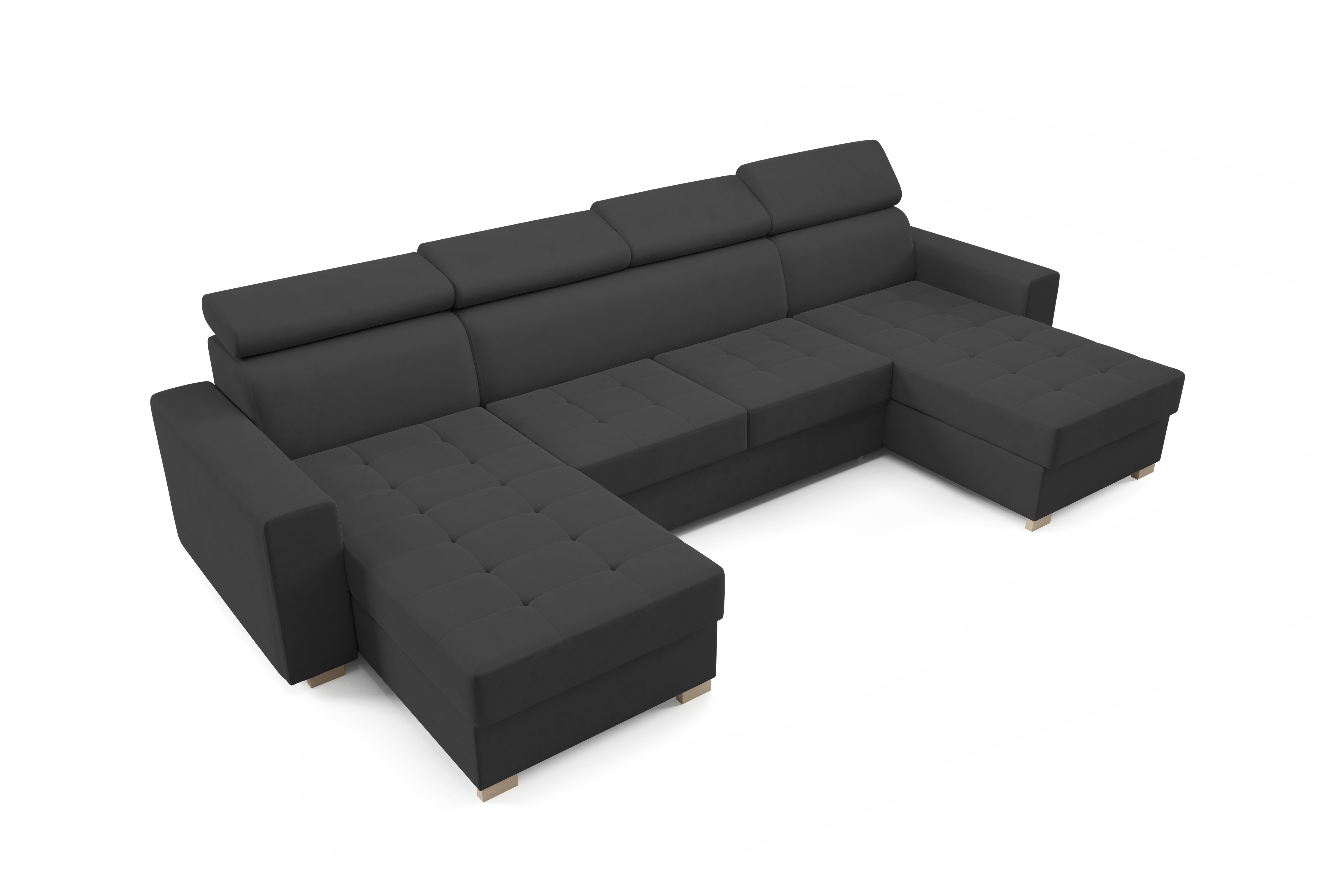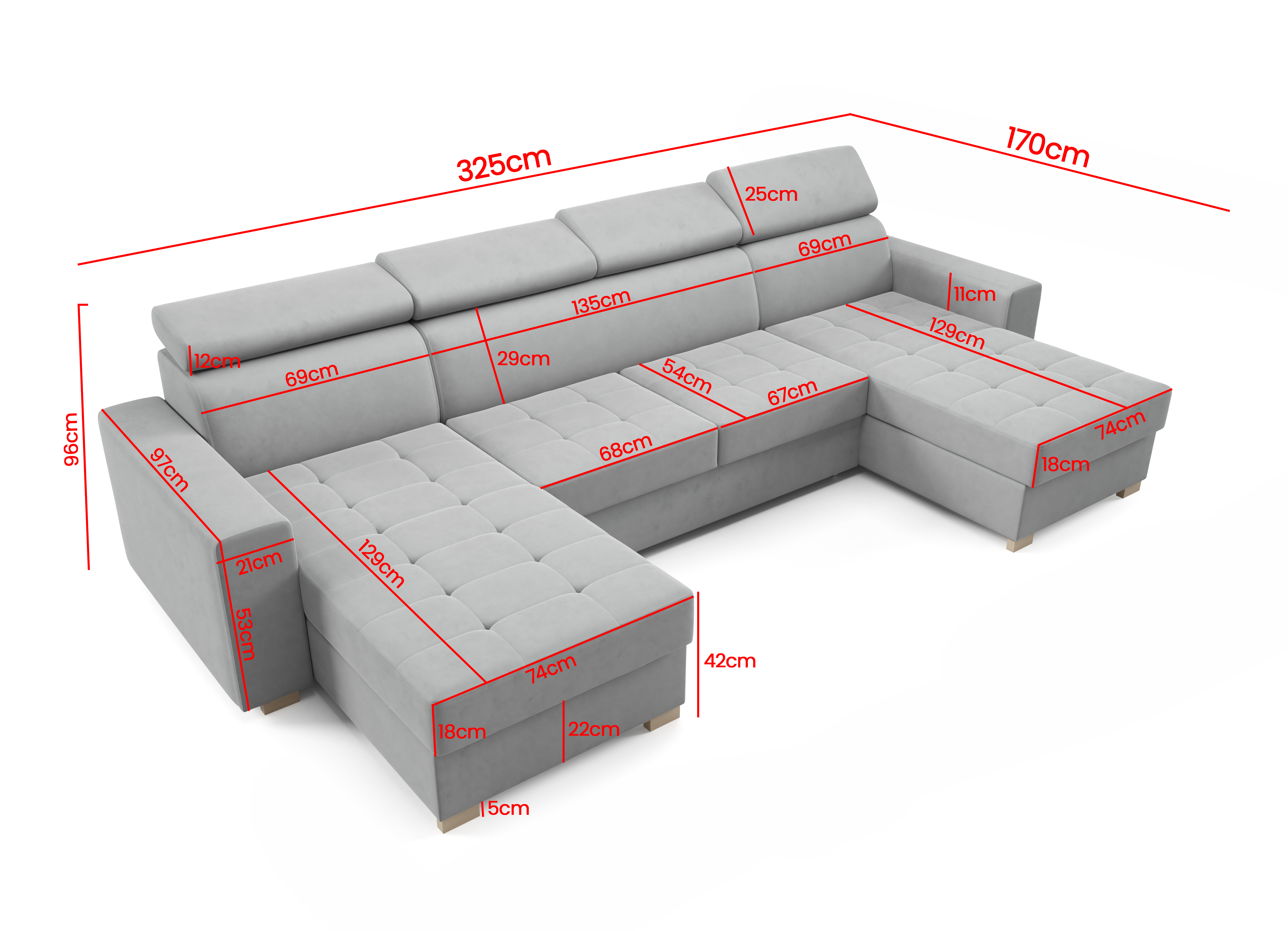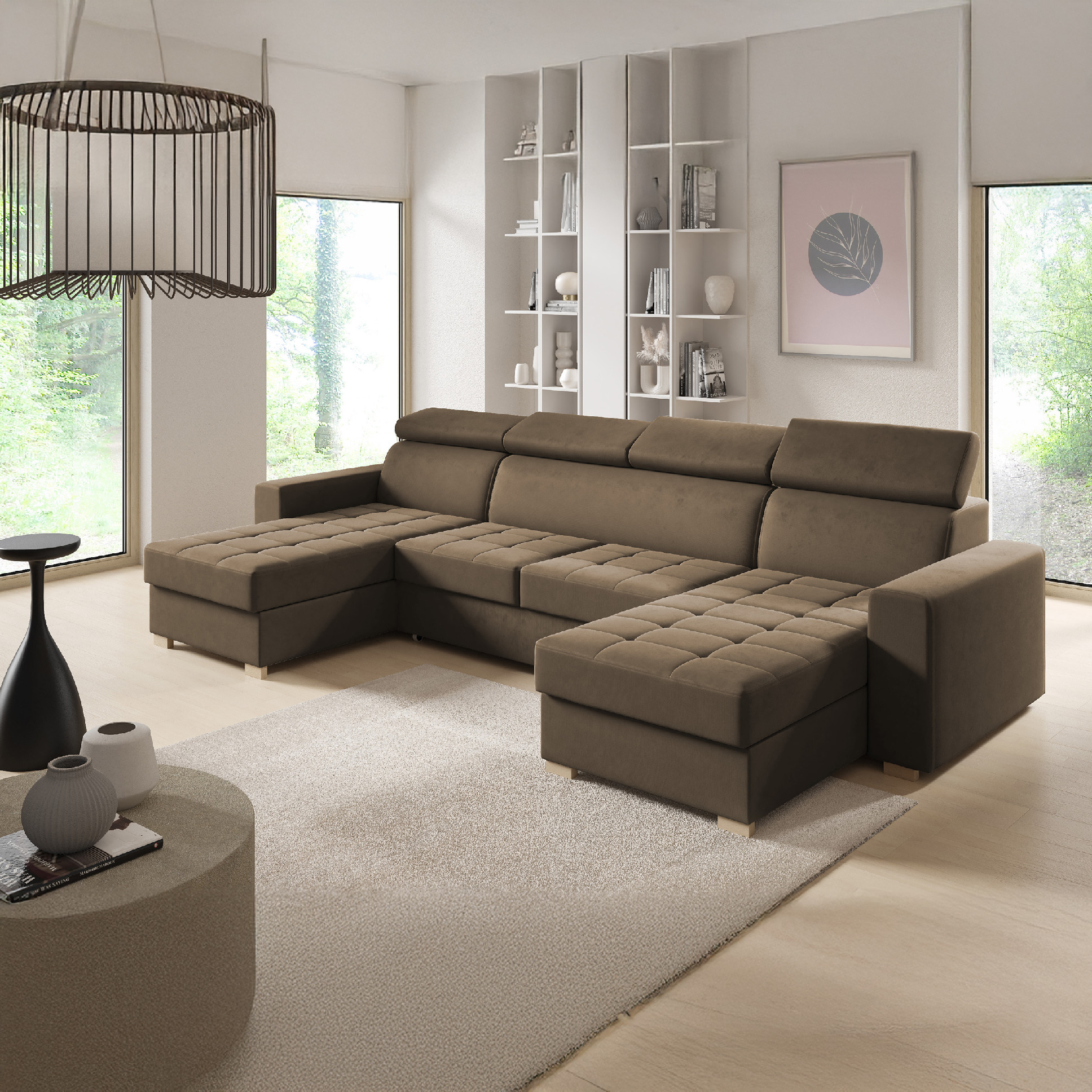 Rohová sedací souprava MONSUM U je královnou každého obýváku. Nabízí spoustu místa pro celou rodinu i přátele – a když se protáhne večer, snadno se rozloží na prostorné lůžko. Uvnitř se ukrývají dvě velké nádoby na lůžkoviny, kam schováš peřiny, deky nebo třeba tajné zásoby sušenek. Potahy jsou vyrobené z tkanin s certifikací OEKO-TEX®, takže si můžeš být jistý, že jsou šetrné k tobě i přírodě. A aby ladila i s tvým vkusem? Vyber si barvu látky – sedačku nabízíme v několika elegantních variantách. ️ Velkorysý prostor ve tvaru U ️ Rozkládací lůžko Dva úložné prostory Výběr látky Pohodlí na každý den ✨ Elegantní vzhled KRONOS MONOLITH Jednoduchá montáž V balení najdeš: Doprava až domů Podělte se s námi o Váš názor. Vaše zkušenost pomůže ostatním zákazníkům při výběru té správné postele pro jejich pohodlný spánek. Postel je dodávána bez matrace, lůžkovin a dekorací zobrazených na ilustračních fotografiích. Napište nám, rádi poradíme s čímkoli, co vás zajímá.Pohodlí ve tvaru dokonalého U