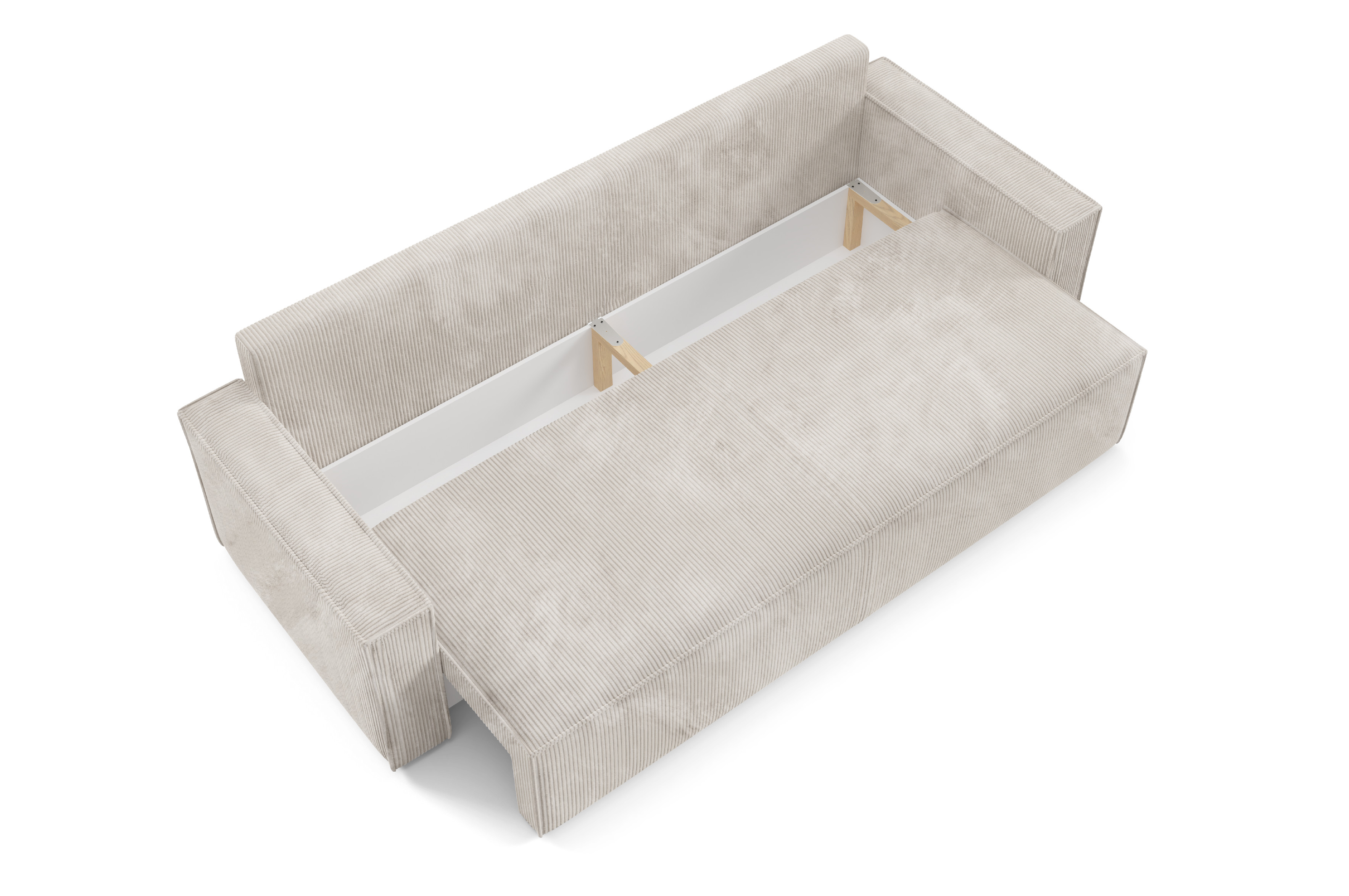 Praktický box schovaný uvnitř – na deky, polštáře i všechny drobnosti, co nechceš mít na očích.